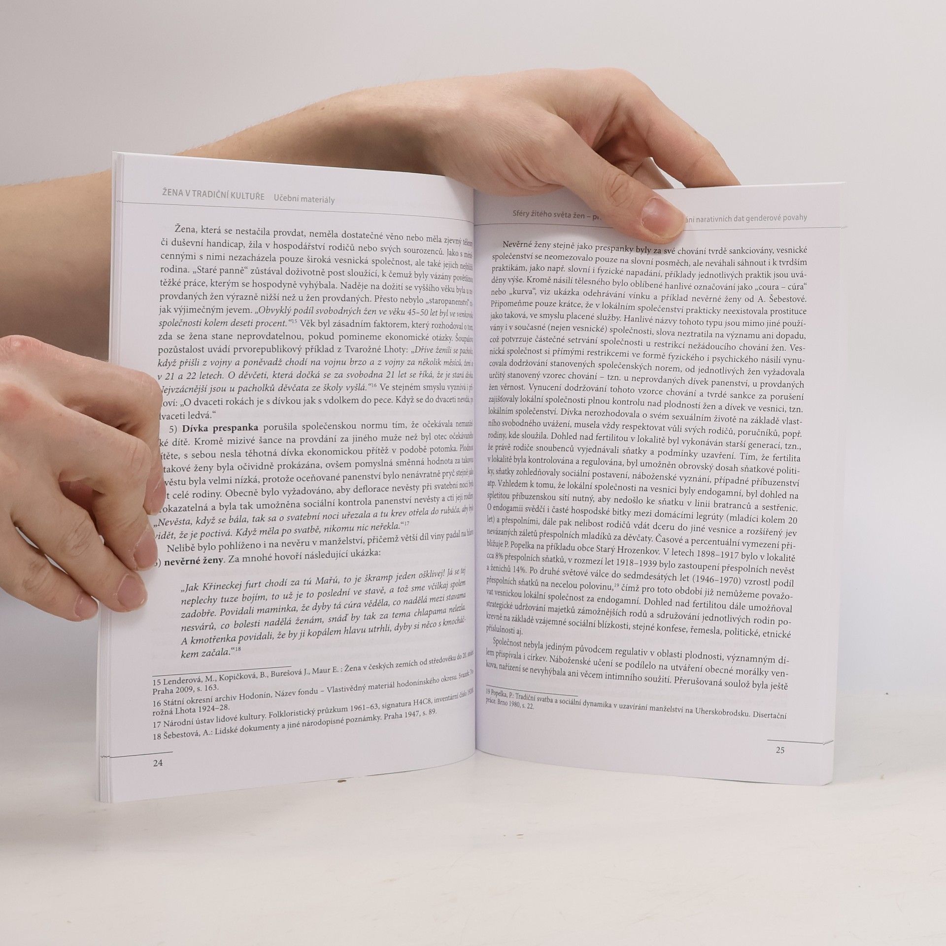 Cílem této příručky je provést studenty tématem genderu a objasnit přístupy uplatňované k této oblasti v etnologii. Publikace poskytuje přehled genderové literatury i metodologie. Obsahuje též příkladové kapitoly zpracování narativních dat ve třech základních oblastech žitého světa žen, a to intimní sféře, polo-veřejné a veřejné oblasti. Jako dodatečný materiál obsahuje příručka testové otázky.