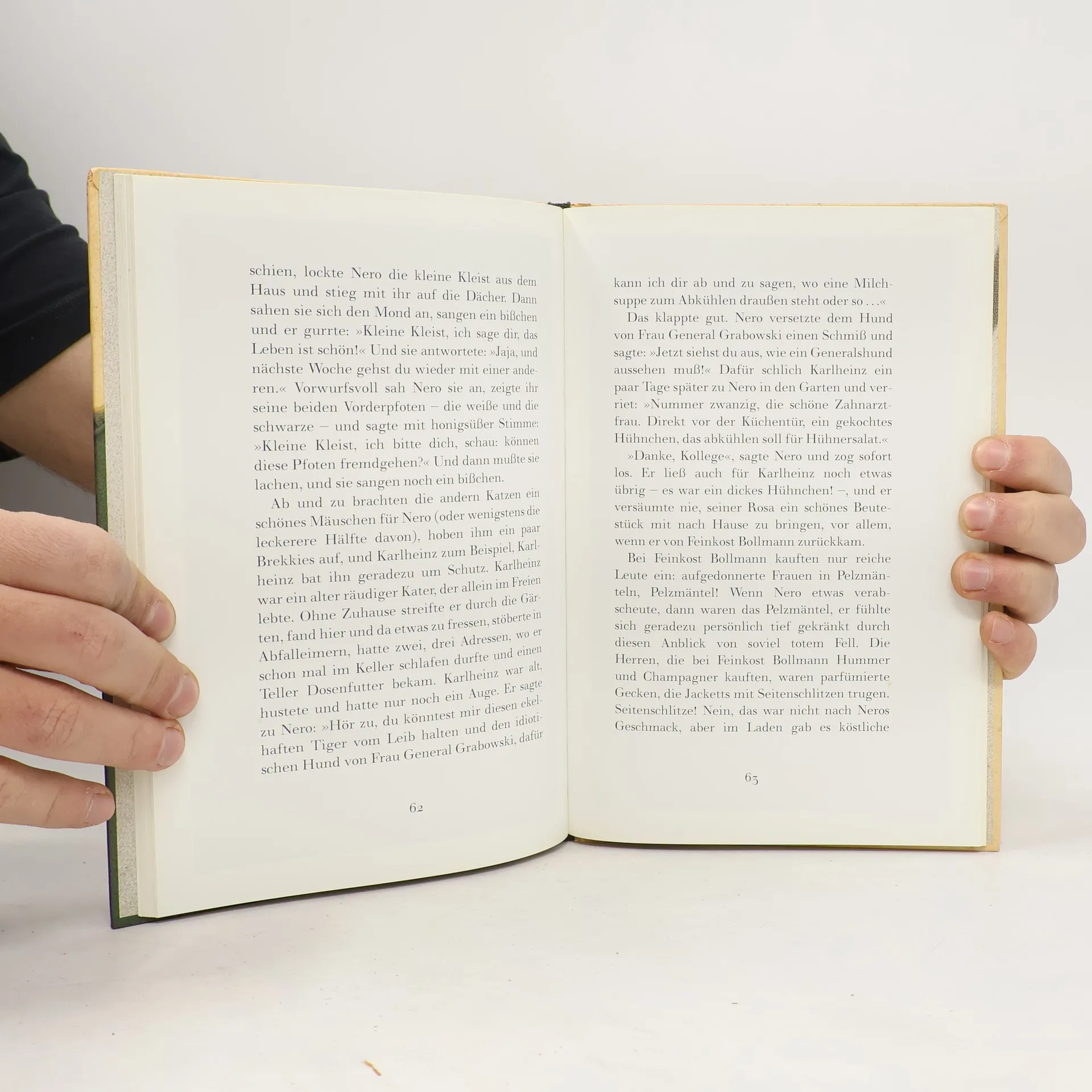 »Nero« nennen sie den kleinen Kater auf dem italienischen Bauernhof, weil er ganz schwarz ist, nur mit einer weißen Vorderpfote. Nero fürchtet sich vor nichts und niemand, nicht einmal vor Robert und Isolde, dem deutschen Ehepaar, das in den Ferien das Häuschen auf dem Hügel bewohnt. Und weil er meint, das Zeug zu einem Chef zu haben, beschließt er, den Hof zu verlassen, um mit den beiden nach Köln am Rhein zu gehen. Dort tobt das wahre Leben! Quint Buchholz hat diese Katzengeschichte mit wunderbaren farbigen Bildern versehen.