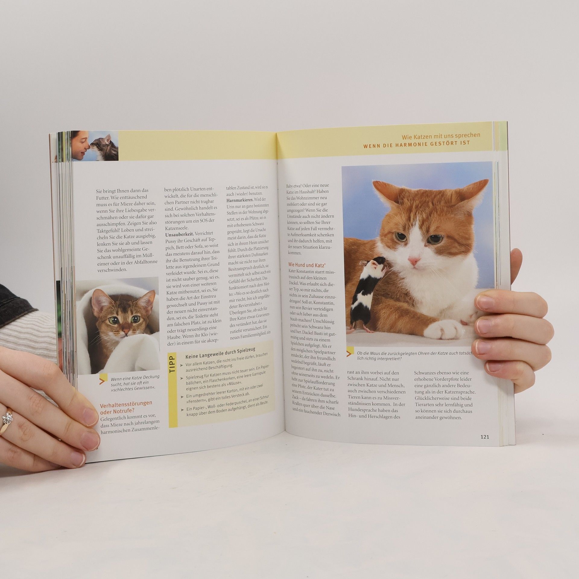 GU TierRatgeber: Katzen — Anmutige Persönlichkeiten. Mit der richtigen Ausstattung und genügend Beschäftigung geht es ihnen rundum gut.Hilfe im täglichen Umgang mit meiner Katze.Kompetent • Praxisnah • EinfühlsamKatzenkinder sind niedlich. Doch auch aus ihnen werden unabhängige Persönlichkeiten — eben noch anschmiegsam, und plötzlich werden die Krallen gezeigt.Typisch Katze: Unverwechselbare Eigenschaften meiners Tieres auf einen Blick.ExpertenRat: Kompetente Antworten auf die zehn häufigsten Fragen zur Katzenhaltung.VerhaltensDolmetscher: Was meine Katze mit ihrem Verhalten ausdrücken will.PraxisSeiten: Richtige Eingewöhnung, Ernährung und Beschäftigung Schritt für Schritt.Im Portrait: Die beliebtesten Haus‑ und RassekatzenMit Tabelle: Krankheitsanzeichen bei Ihrer Katze schnell erkennen.Die zehn Goldenen Regeln der Katzenerziehung.