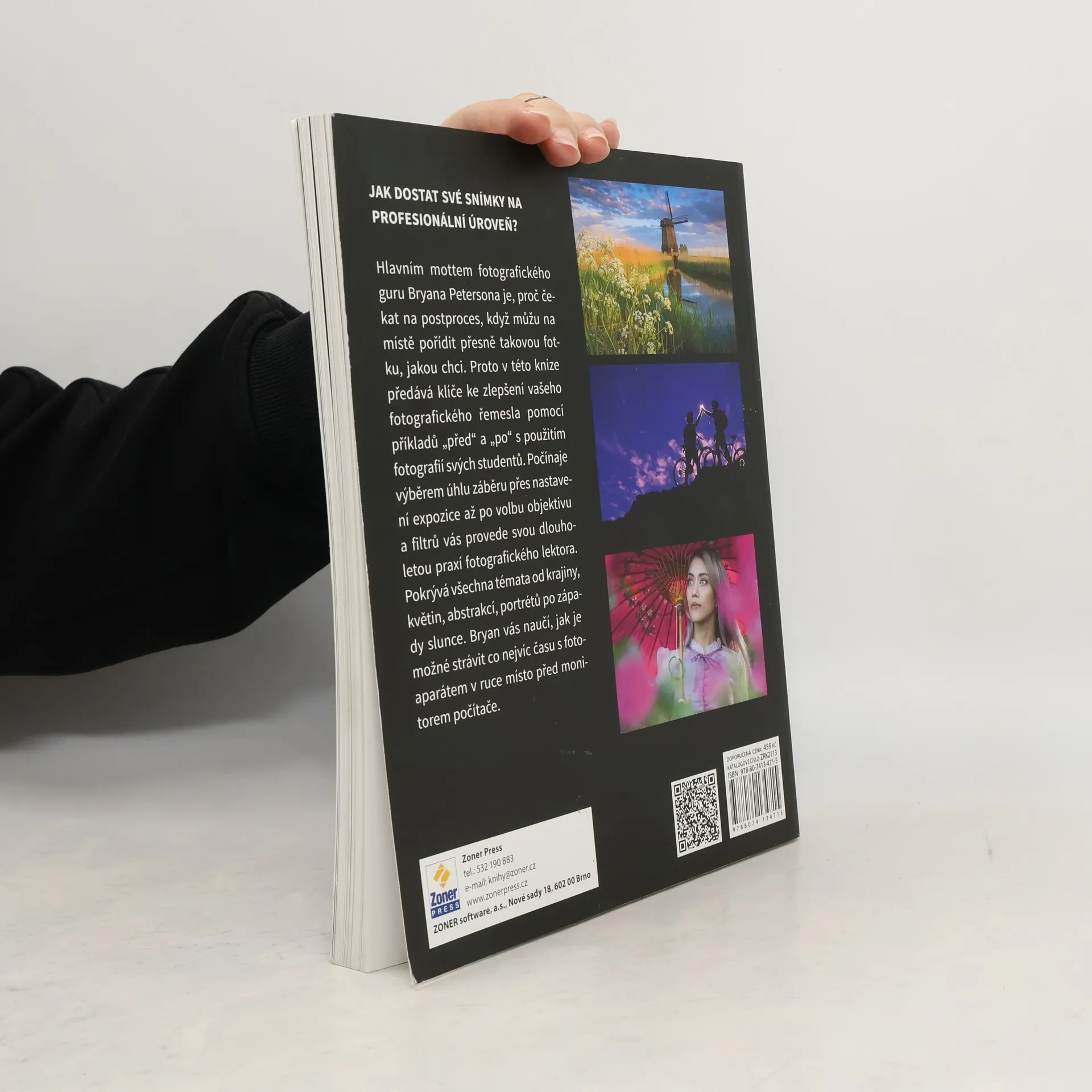 Fotografujete a chcete své snímky dostat na vyšší úroveň? Hlavním Petersonovým mottem, nejen této knihy, ale i jeho kurzů, je, proč čekat na postproces, když můžu na místě vyfotit takovou fotku, jakou chci. Proto v knize ukazuje vždy onen krok navíc, který je možné ještě udělat, aby byla fotografie perfektní a dosáhli jste v ní toho, po čem toužíte. Autor předává klíče ke zlepšení vašeho fotografického řemesla pomocí příkladů „před“ a „po“ s použitím fotografií studentů svých workshopů počínaje výběrem zajímavého úhlu záběru přes nastavení expozice až po volbu objektivu a filtrů, od možností kreativního využití expozičního času, vyvážení bílé, měření expozice až po úpravy fotografií a mnoho dalšího. Pokrývá všechna témata, ať už chcete fotografovat krajiny, květiny, abstrakci, divokou zvěř, lidi, západy slunce, stromy, oceány, hory, sport nebo nepříznivé počasí.Tato kniha je jedinečná příležitost zúčastnit se na dálku Bryanových lekcí a workshopů, jež jsou jinak k dispozici pouze prostřednictvím jeho školy fotografie – Bryan Peterson School of Photography.