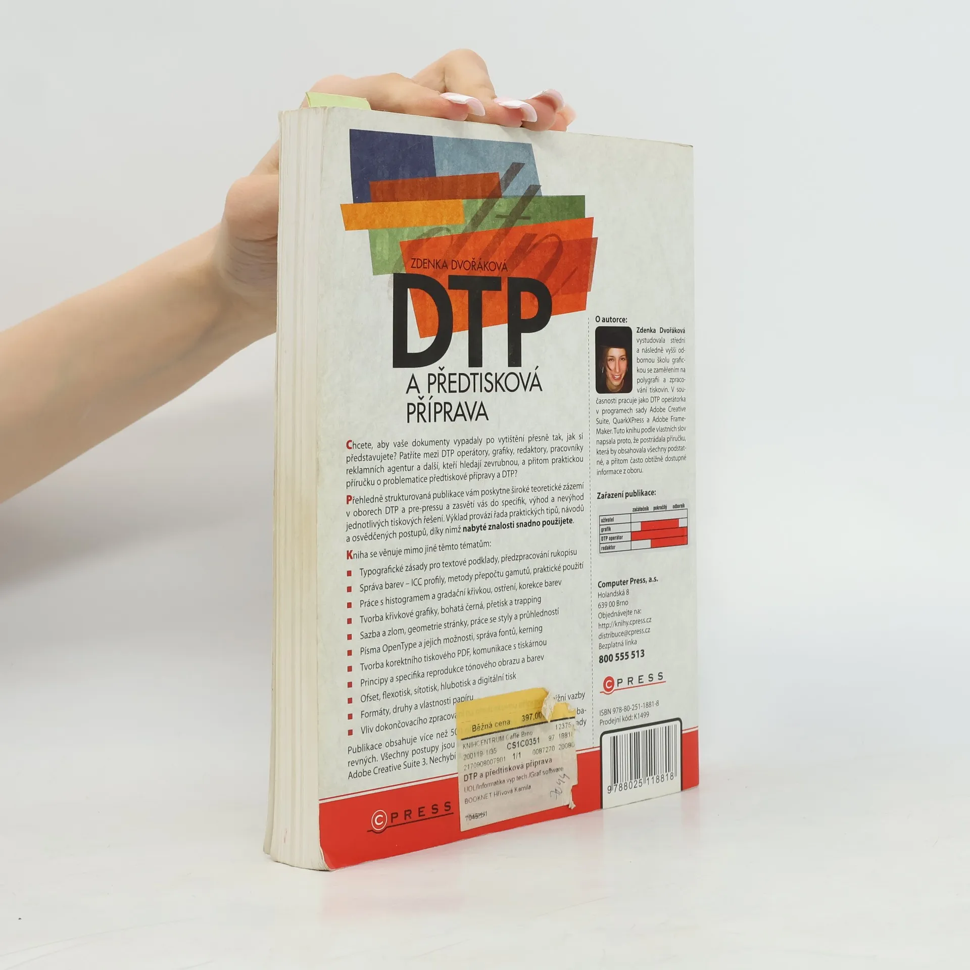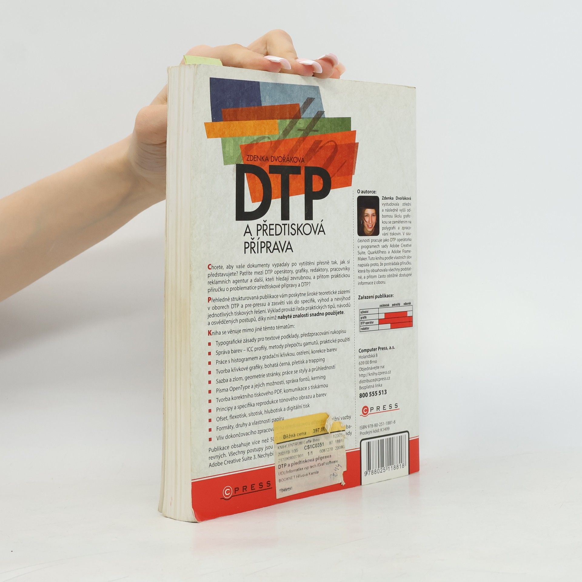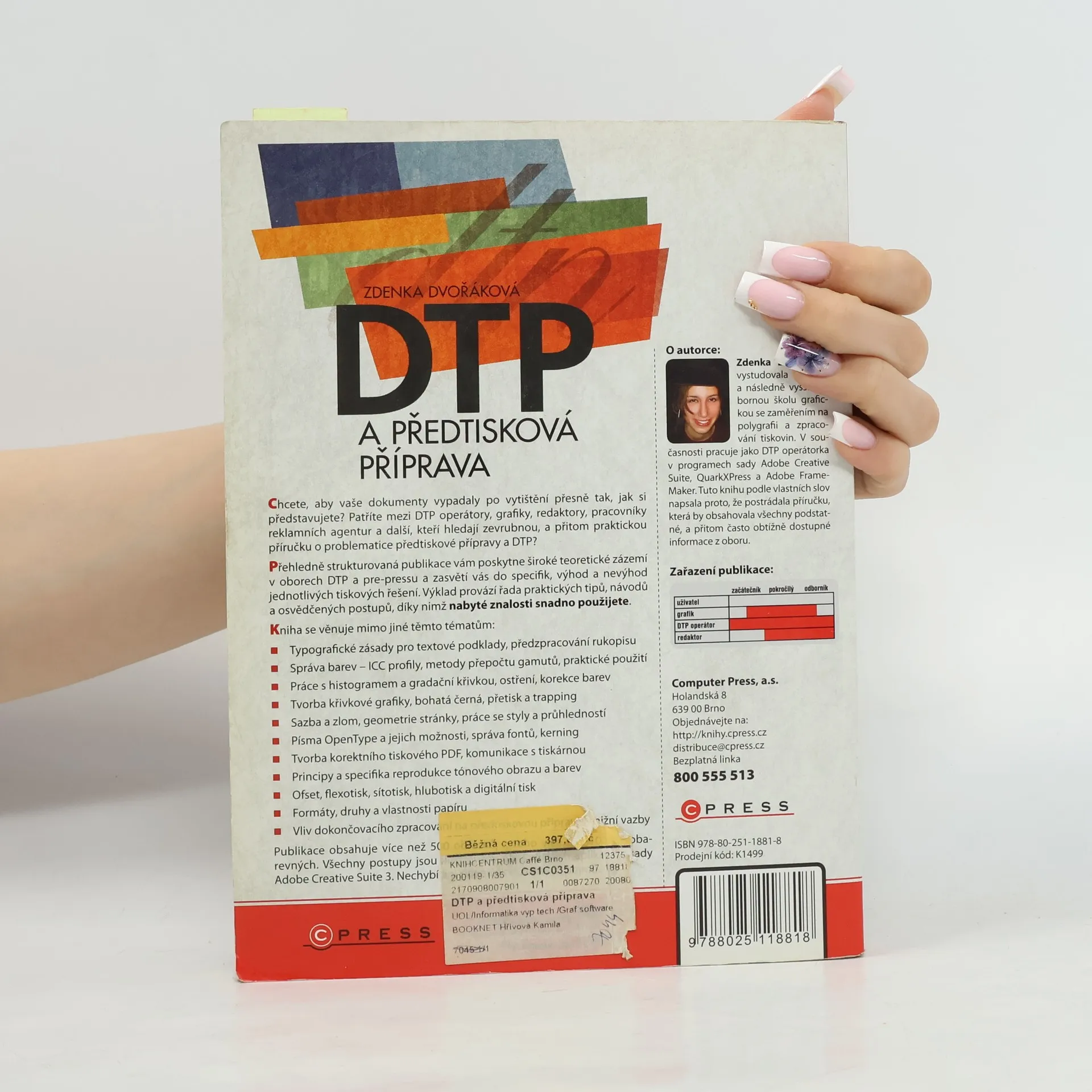 Chcete, aby vaše dokumenty vypadaly po vytištění přesně tak, jak si představujete? Patříte mezi DTP operátory, grafiky, redaktory, pracovníky reklamních agentur a další, kteří hledají praktickou příručku o předtiskové přípravě a DTP? Publikace vám poskytne široké teoretické zázemí v oborech DTP a pre-pressu a zasvětí vás do specifik jednotlivých tiskových řešení. Výklad doplňují praktické tipy, návody a osvědčené postupy pro snadné použití nabytých znalostí. Kniha se zaměřuje na typografické zásady, správu barev, práci s histogramem a gradační křivkou, tvorbu křivkové grafiky, sazbu a zlom, písma OpenType a správu fontů. Dále se věnuje tvorbě korektního tiskového PDF, komunikaci s tiskárnou a reprodukci tónového obrazu. Obsahuje také informace o různých tiskových technikách, formátech papíru a vlivu dokončovacího zpracování na předtiskovou přípravu. Publikace je bohatě ilustrována více než 500 obrázky, včetně více než 100 plnobarevných. Všechny postupy jsou prezentovány na grafických aplikacích Adobe Creative Suite 3 a nechybí slovníček důležitých pojmů.