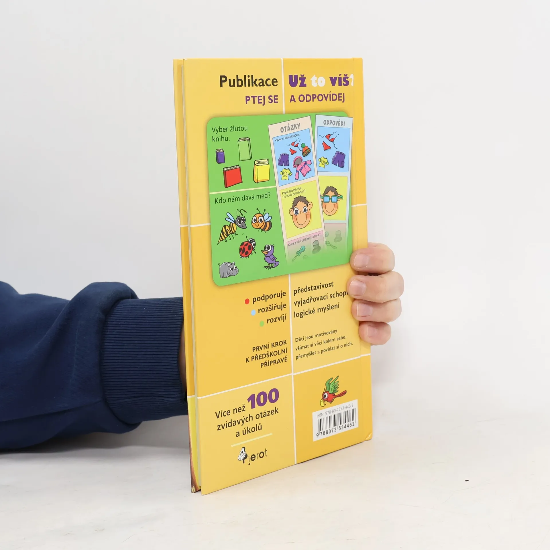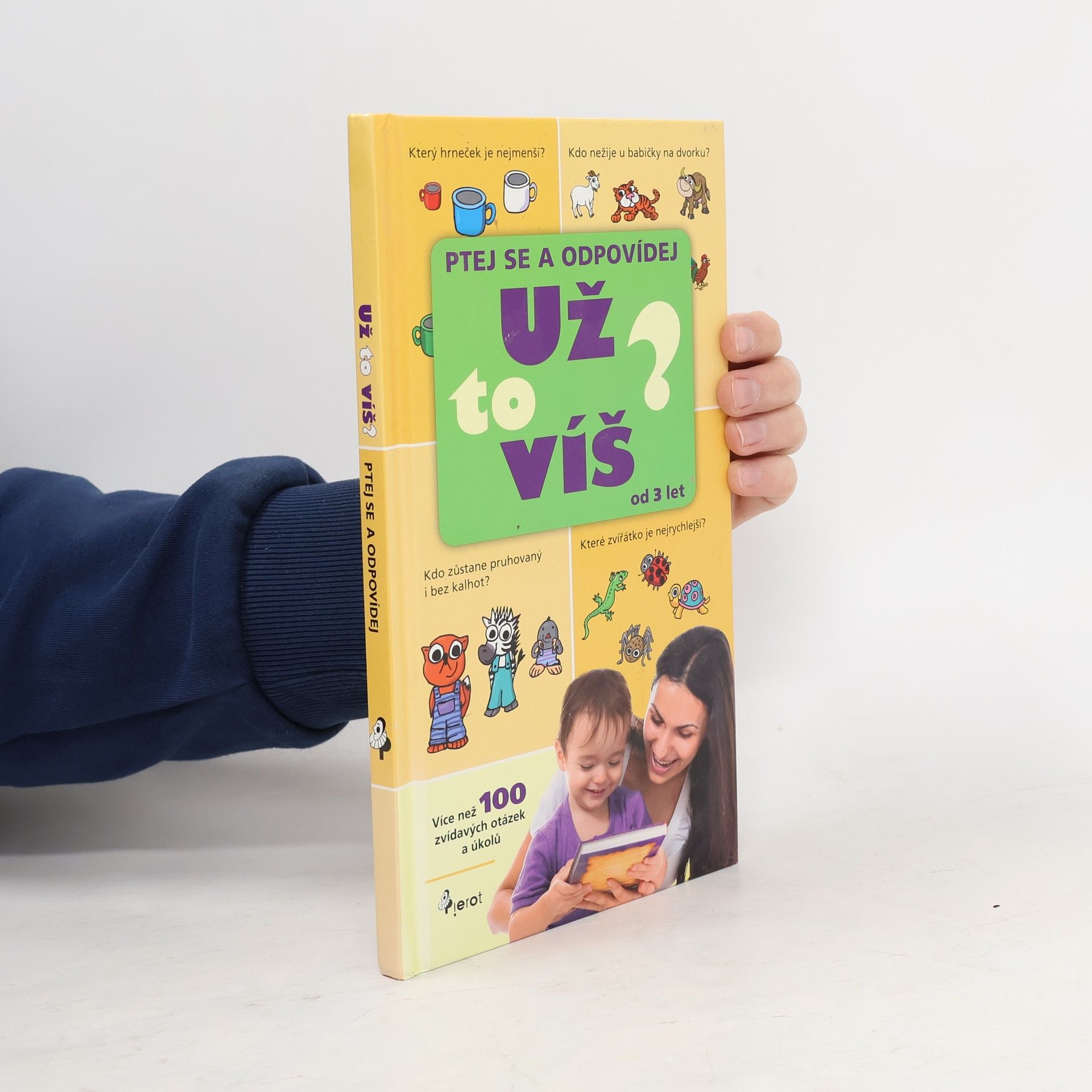 Publikace UŽ TO VÍŠ? Ptej se a odpovídej je určena pro děti od 3 let. Titul obsahuje více než 100 zvídavých otázek a úkolů. Při hře je nutná spolupráce rodiče, který popisuje dítěti obrázky a klade mu jednoduché otázky. Jako např. kolik je na obrázku zvířat, do jaké pohádky patří ježibaba atd. Správné odpovědi jsou vždy na rubu konkrétní stránky. Úkoly podporují představivost, vyjadřovací schopnosti i logické myšlení dítěte. Využitelnost knihy je díky její velikosti neomezená. Můžete ji používat doma, na cestách, v čekárně u lékaře, prostě kdekoli.