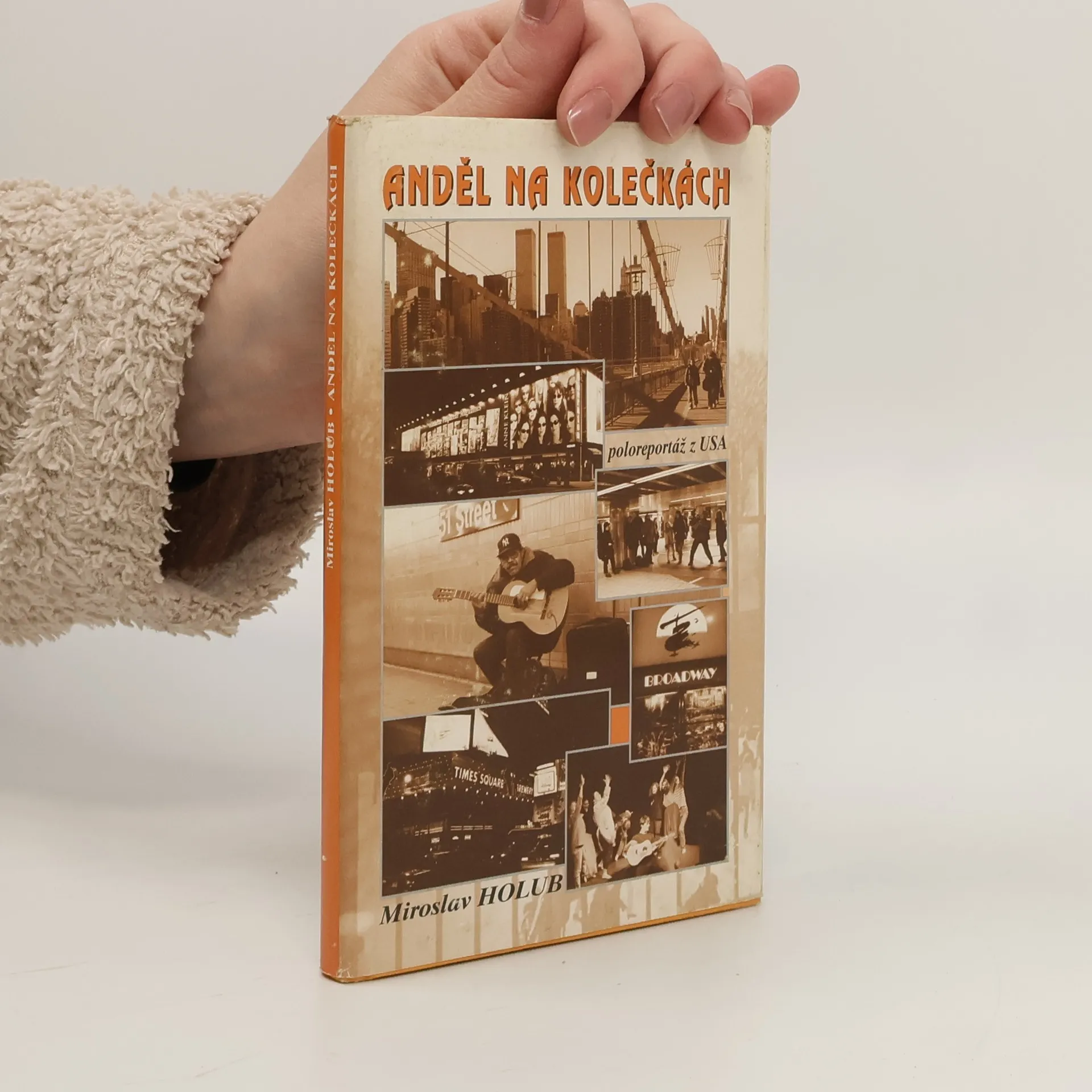 Holubův cestopis, napsaný na základě dojmů z USA, nese označení "poloreportáž". Ono "polo" však neznamená, že by Andělu na kolečkách něco chybělo do řádné reportáže. Znamená spíš, že to, co u běžných cestopisných prací často zbytečně zabírá celou rozlohu díla, je zde beze ztrát zhuštěno na část plochy; zůstalo tedy hodně místa pro něco navíc. A ta druhá polovina, to navíc, čím Holubova knížka hned upoutá, je především soustava naléhavých otázek, jimiž autor ohmatává každý jev. Již poslání každodenní práce exaktního vědce nutí holuba k preciznosti, k potřebě jít až do konce věcí a chápat na prvním místě realitu v celém jejím dosahu. Až k tomu, že svět je přece jenom jeden a všechno v něm se týká všech. Soustava Holubových otázek však také tvoří pevný světový názor a v každém jeho postřehu proto ihned nacházíme třídění, hodnocení. Na jeho konci je vždy výrok: tohle je s člověkem, tohle je proti němu; rozeznávejme obojí přesně! - V té neúplatnosti, ve které se věcnost stýká s patosem a spolutvoří tak modernost Holubovu, je důležitý nový rys Anděla na kolečkách.
