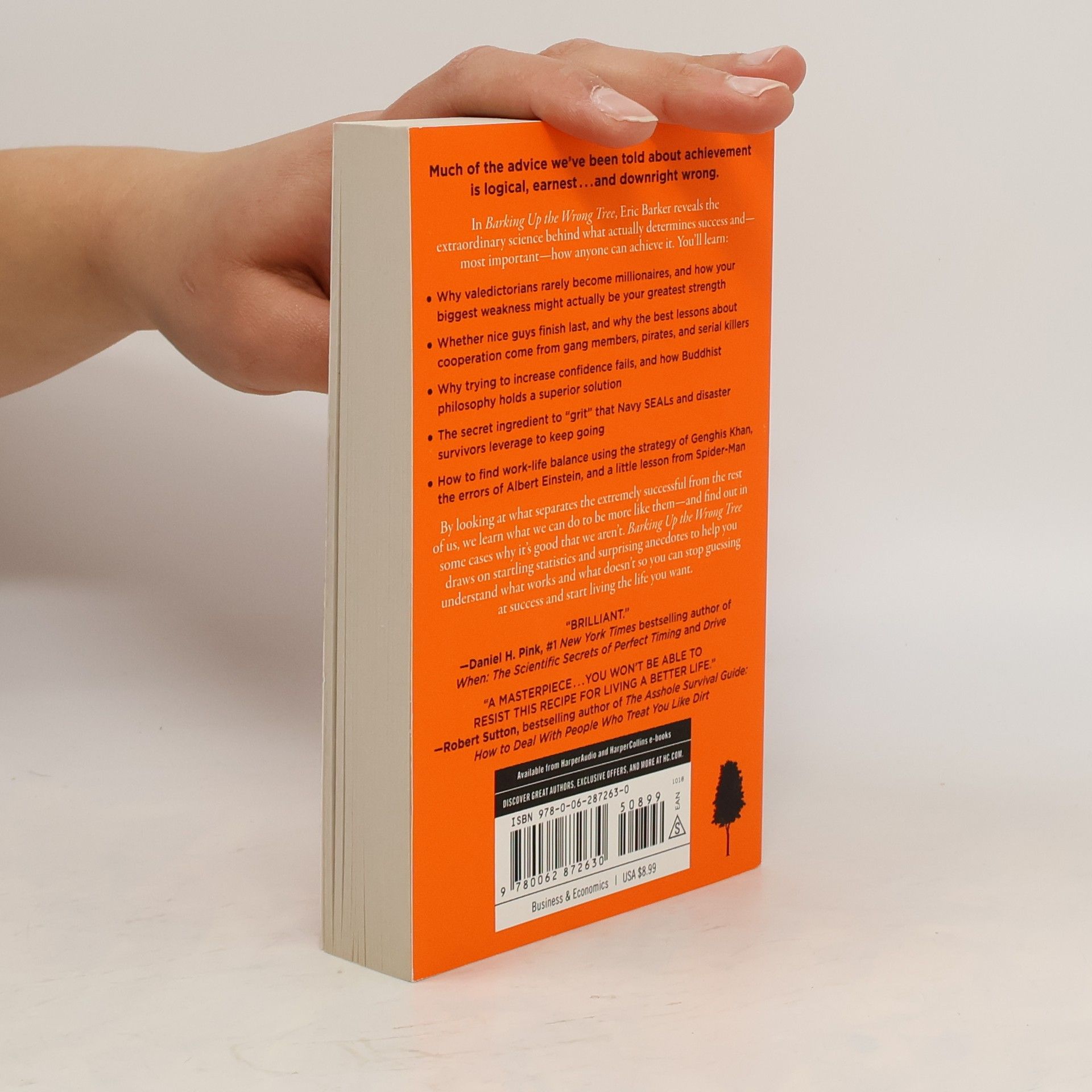 Wall Street Journal Bestseller Much of the advice we’ve been told about achievement is logical, earnest…and downright wrong. In Barking Up the Wrong Tree, Eric Barker reveals the extraordinary science behind what actually determines success and most importantly, how anyone can achieve it. You’ll learn: • Why valedictorians rarely become millionaires, and how your biggest weakness might actually be your greatest strength • Whether nice guys finish last and why the best lessons about cooperation come from gang members, pirates, and serial killers • Why trying to increase confidence fails and how Buddhist philosophy holds a superior solution • The secret ingredient to “grit” that Navy SEALs and disaster survivors leverage to keep going • How to find work-life balance using the strategy of Genghis Khan, the errors of Albert Einstein, and a little lesson from Spider-Man By looking at what separates the extremely successful from the rest of us, we learn what we can do to be more like them—and find out in some cases why it’s good that we aren’t. Barking Up the Wrong Tree draws on startling statistics and surprising anecdotes to help you understand what works and what doesn’t so you can stop guessing at success and start living the life you want.