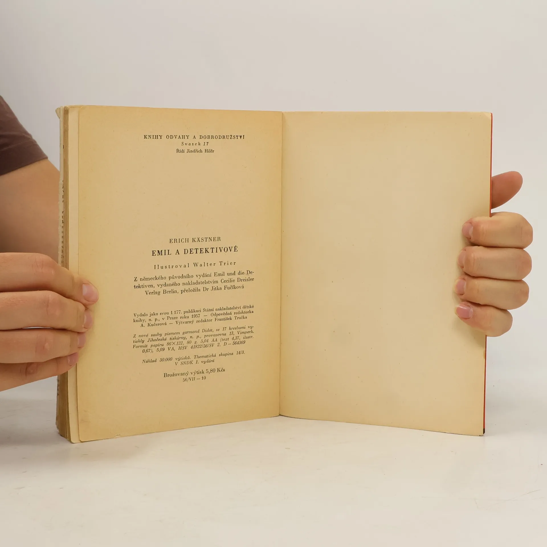 Po několika letech vychází znovu oblíbená dětská knížka známého německého autora o chlapci Emilovi a celé tlupě kluků, která v ulicích Berlína honí zloděje. V této dětské detektivce sleduje autor humorně a živě všechny její hrdiny ve zdánlivě prohrané hře až k úspěchům dosaženým společným úsilím, důvtipem a pohotovostí. Výchovná morálka vyplývá z celého příběhu přirozeně a nenásilně.