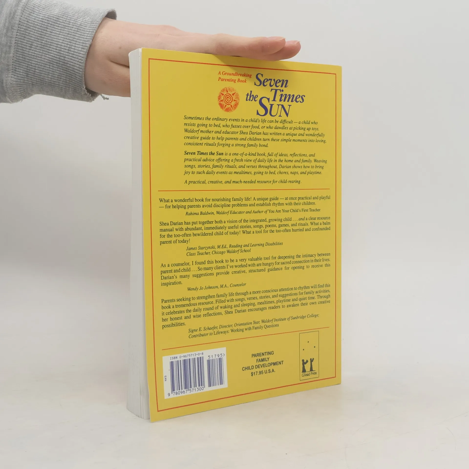A one-of-a-kind book--full of ideas, reflections, and practical advice offering a fresh view of daily life in the home and family. Weaving songs, stories, family rituals, and verses throughout, mother and educator Shea Darian shows how to bring joy to such daily events as mealtimes, going to bed, chores, naps, and playtime. A practical, creative, and much-needed resource for child-rearing in the '90s.