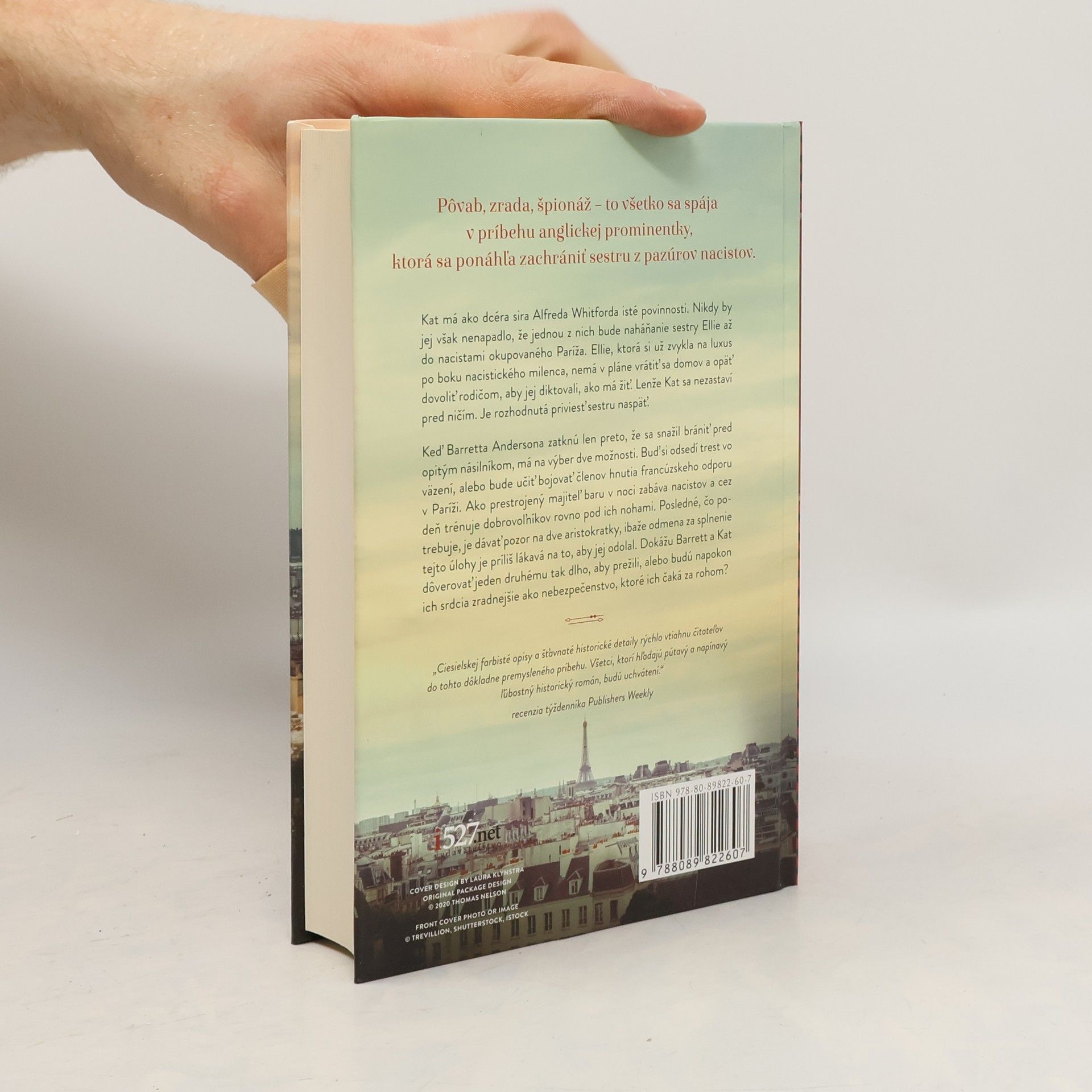 Pôvab, zrada, špionáž – to všetko sa spája v príbehu anglickej prominentky, ktorá sa ponáhľa zachrániť sestru z pazúrov nacistov. Kat má ako dcéra sira Alfreda Whitforda isté povinnosti. Nikdy by jej však nenapadlo, že naháňanie sestry Ellie až do nacistami okupovaného Paríža bude jednou z nich. Ellie, ktorá si už zvykla na luxus po boku nacistického milenca, nemá v pláne vrátiť sa domov a opäť dovoliť rodičom, aby jej diktovali, ako má žiť. Lenže Kat sa nezastaví pred ničím. Je rozhodnutá priviesť sestru naspäť. Keď Barretta Andersona zatknú len preto, že sa snažil brániť pred opitým násilníkom, má na výber dve možnosti. Buď si odsedí trest vo väzení, alebo bude učiť bojovať členov hnutia francúzskeho odporu v Paríži. Ako prestrojený majiteľ baru v noci zabáva nacistov a cez deň trénuje dobrovoľníkov rovno pod ich nohami. Posledné čo potrebuje, je dávať pozor na dve aristokratky, ibaže odmena za splnenie tejto úlohy je príliš lákavá na to, aby jej odolal. Dokážu Barrett a Kat dôverovať jeden druhému dosť dlho na to, aby prežili, alebo budú napokon ich srdcia zradnejšie ako nebezpečenstvo, ktoré ich čaká za rohom?