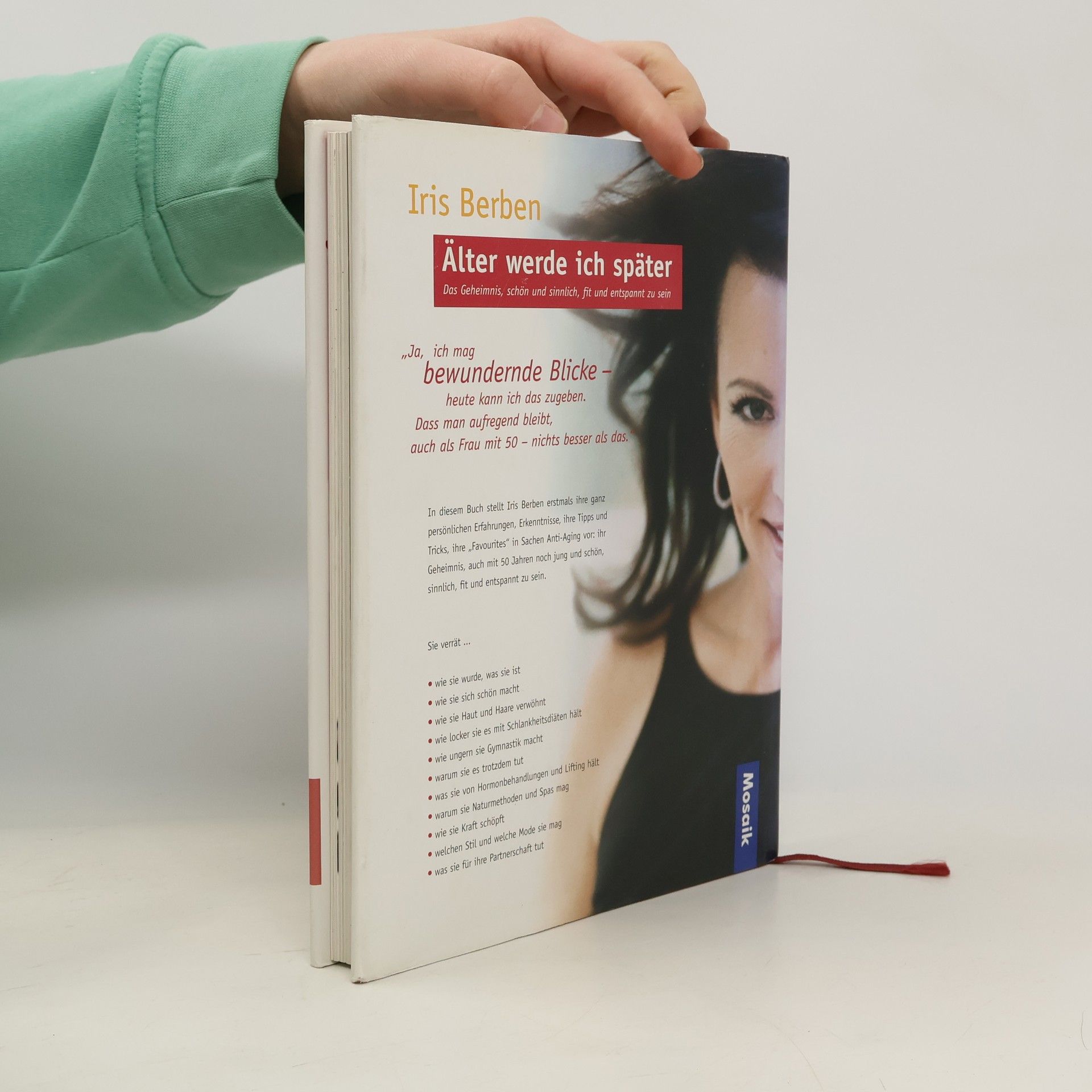 Einer Umfrage zufolge ist Iris Berben Deutschlands "bekannteste und erotischste" Schauspielerin. Als erfahrene Schauspielerin weiß sie ihre Stärken ins rechte Licht zu rücken. Privat lebt sie jedoch längst nicht so diszipliniert, wie man es von einem 50-jährigen Filmstar erwarten würde.§In diesem Buch schreibt sie erfrischend offen, was sie für ihr Aussehen tut und was nicht. Welche Schönheitsrezepte sie ausprobiert und wieder verworfen hat. Dass sie sich ein tägliches Fitnessprogramm auferlegt, obwohl sie eher der bekennende No-Sports-Typ ist. Und wie sie es mit dem so genannten gesunden Leben hält - bei Heißhungerattacken auf Spaghetti und der spontanen Lust auf ein Glas Rotwein.§Die Schauspielerin lässt uns an ihrem Leben vor und hinter den Kulissen teilnehmen. Sie verrät Tricks der Visagistin für ein makelloses Film-Make-up, aber sie schreibt auch über ihre Probleme mit grauen Haaren, Doppelkinn und Rückenverspannungen. Ungeniert berichtet sie von ihrer Einstellung zur Sexualität und von ihrem Glück als Mutter. Iris Berben hat bewusst keinen klassischen Ratgeber geschrieben, die Mischung aus persönlicher Erfahrung, Anekdoten und Expertenrat entspricht mehr ihrem Stil. Vor allem will sie nicht als "Überfrau" erscheinen, die sich in allen Situationen ihres Lebens richtig verhalten und nie Probleme mit dem Älterwerden gehabt hätte.