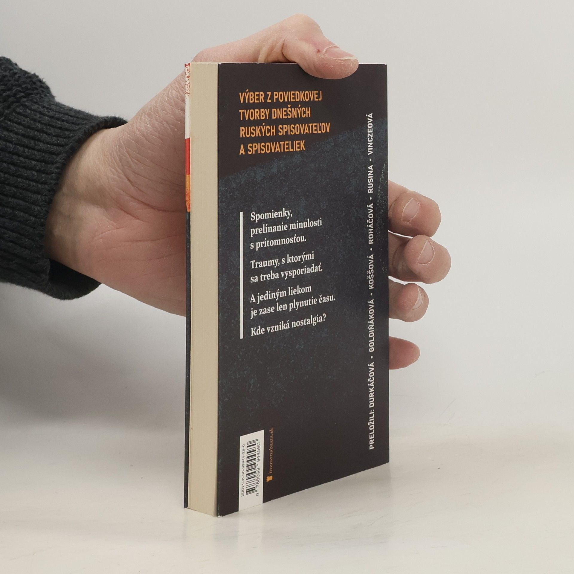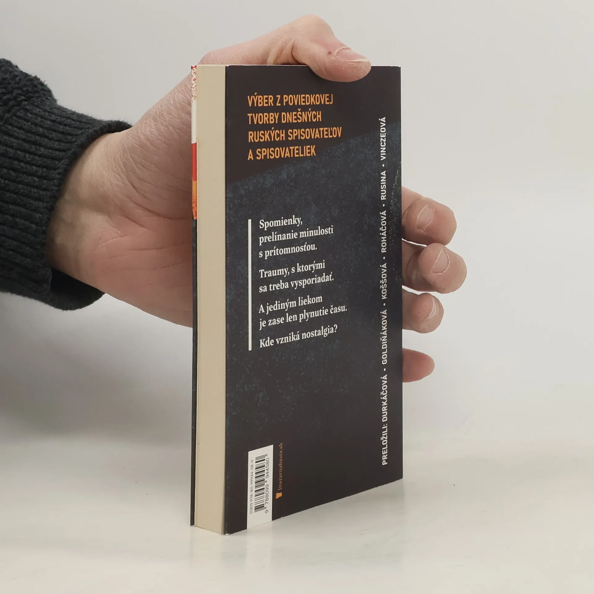 Výber z poviedkovej tvorby súčasných ruských spisovateliek a spisovateľov v preklade študentiek a študentov prekladateľstva z projektu Samyzdat. Spomienky, prelínanie minulosti s prítomnosťou. Traumy, s ktorými sa treba vysporiadať. A jediným liekom je zase len plynutie času. Kde vzniká nostalgia?