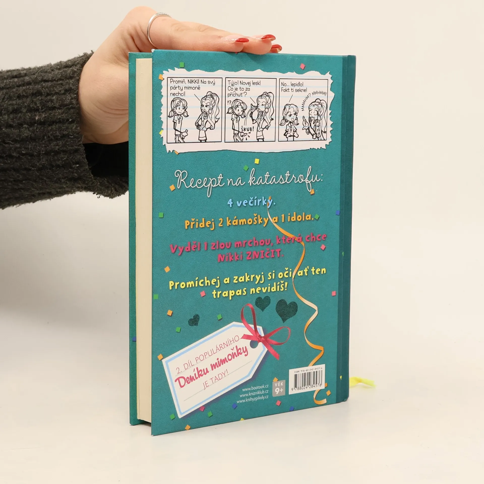 Druhá kniha humorných deníkových zápisků školačky Nikki, školní mimoňky s velkou dávkou talentu pro výtvarku a trapasy. Začal nový školní rok, ale Nikki se daří ve škole snad ještě hůř než loni. Na žebříčku oblíbenosti všech podivných existencí se umístila nejen za školníkem a vrchní kuchařkou, ale dokonce až za školním maskotem Ještěrkou Jirkou. Život jí sužuje všemi milovaná MacKenzie a před klukem svých snů, Brandonem, se umí akorát perfektně ztrapnit. Navíc začíná období plesů, večírků a párty a zatím to vypadá, že jediným východiskem, jak se na ně vetřít, znamená zapsat se do dobrovolné úklidové čety a ples absolvovat v kostýmu "pytel sajrajtu." Nikki však umí zazářit za každých okolností.