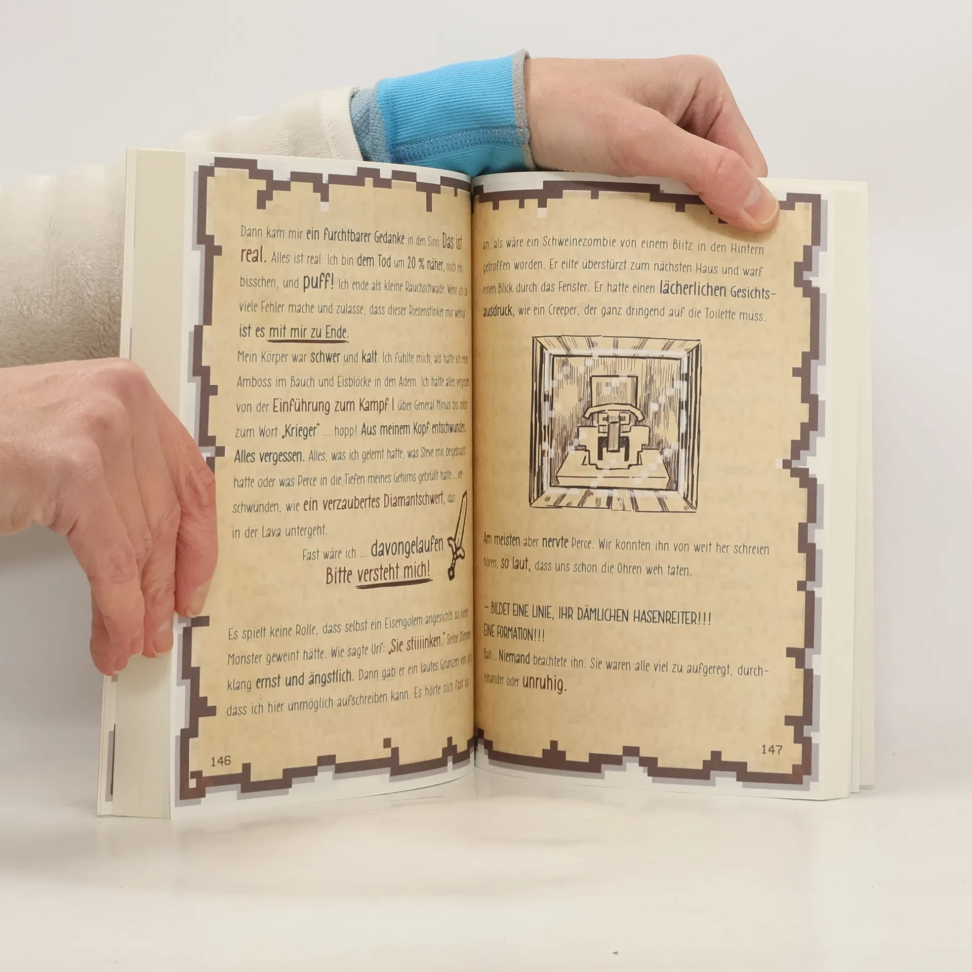 Die Fortsetzung des witzigen Tagebuchs eines jungen Minecraft-Dorfbewohners, der ein Krieger werden will. „Der Boden erzitterte leicht. Eine immense Kreatur bewegte sich in Richtung Skelett und Zombie. Sie war mindestens 6 Blöcke hoch. Ihre Fäuste waren breit wie ein Block. Der Kopf war sogar noch größer. Meine wissenschaftlichen Überlegungen und Berechnungen führten mich zu folgendem Schluss: LAUF-LAUF LAUF-LAUF-LAUF!“ Minus träumt noch immer davon, Abenteurer zu werden. Doch als hätte er mit einem gezähmten Babyschleim, einer geheimnisvollen Mitschülerin und neuen Feinden, die vor nichts zurückschrecken, um den Wettkampf zu gewinnen, nicht schon alle Hände voll zu tun, wächst auch der Wald jenseits der Festungsmauern immer weiter ... Minus muss den gesamten Mut eines echten Kriegers aufbringen, um sich der furchtbaren Bedrohung zu stellen, die auf sein Dorf zukommt ...