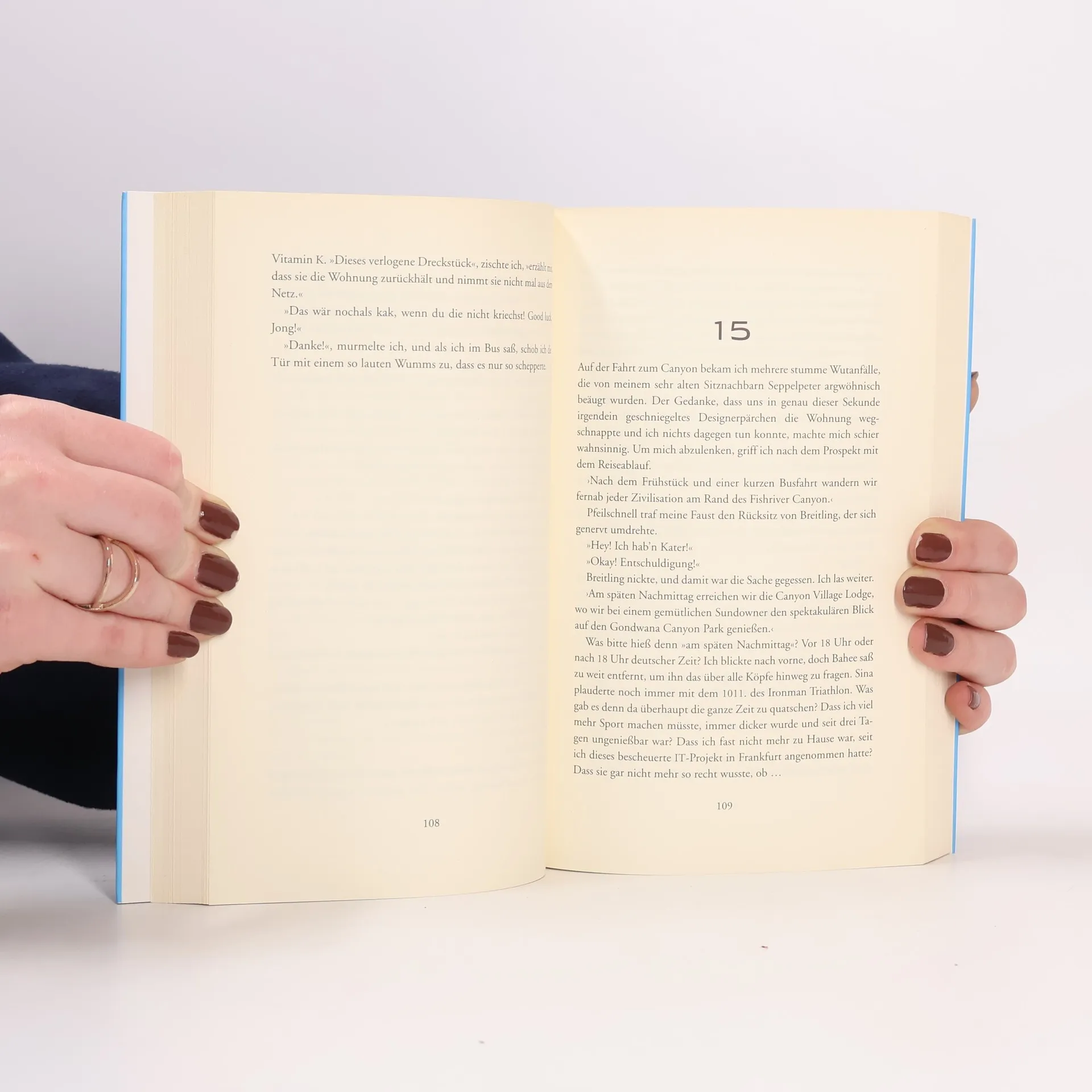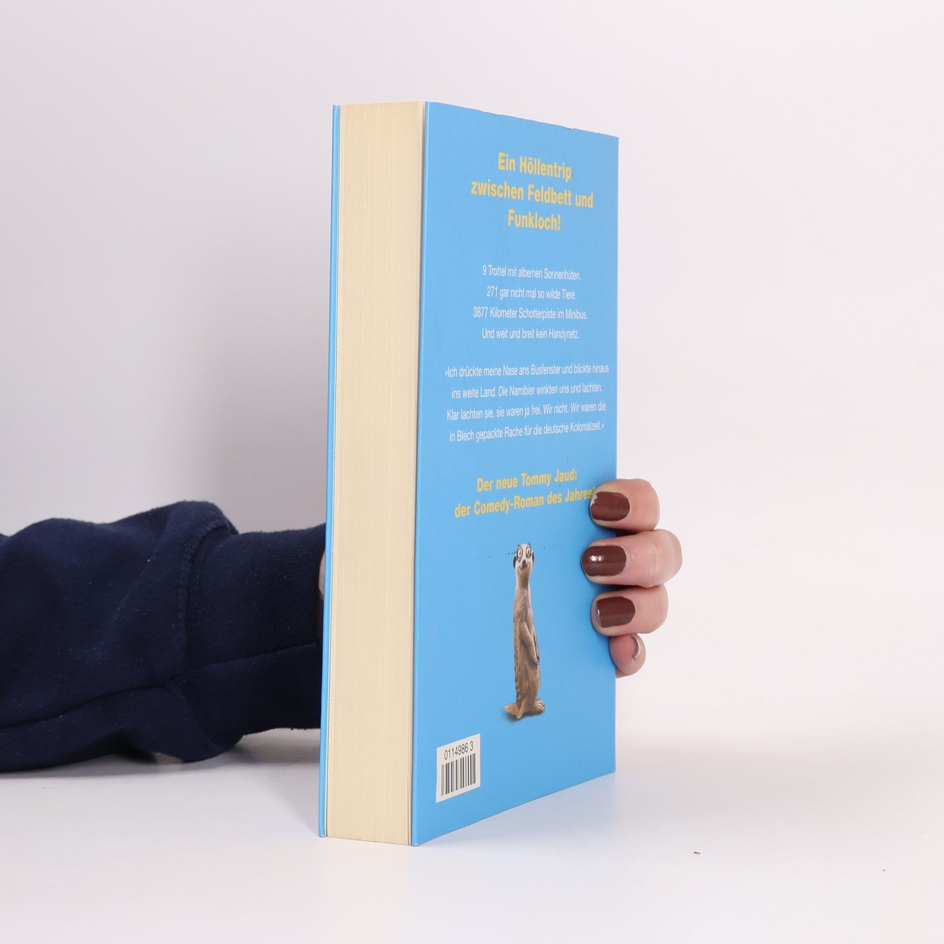 Der Bestseller – mit Daumenkino! Sitzreihe 12 war die letzte, die zwischen Tortellini und Hühnchen wählen durfte. Ich saß in Reihe 13. Schon auf dem Hinflug hätte mir klar sein können, dass der Jahresurlaub zum Albtraum wird. Wer an allem schuld ist, ist für Matze klar: seine Freundin Sina. Während er die neue Eigentumswohnung klargemacht hat, sollte sie einfach nur »irgendwas« buchen. Doch das »irgendwas« entpuppt sich als zweiwöchige Gruppenreise durch Namibia, wo selbst eine hüftkranke Schildkröte schneller ist als das Internet. Warum muss er in einem Kleinbus voller Bekloppter über afrikanische Schotterpisten rütteln, statt auf Mallorca ein Bierchen zu schlürfen? Bei minus zwei Grad stolpert er in einem albernen Wanderhut über die Dünen der Kalahari. Als er erfährt, dass die sicher geglaubte Wohnung an andere Käufer geht, wenn er nicht sofort die fünf Tausend Euro Reservierungsgebühr überweist, hat er gleich drei neue Probleme: Das nächste Internetcafé ist fünfhundert Kilometer entfernt, sein Handyakku leer und das einzige Ladegerät in österreichischer Hand. Ich drücke meine Nase ans Busfenster und blicke hinaus ins weite Land. Die Namibier winken uns und lachen. Klar lachen sie, sie sind ja frei. Wir nicht. Wir sind die in Blech gepackte Rache für die deutsche Kolonialzeit.
