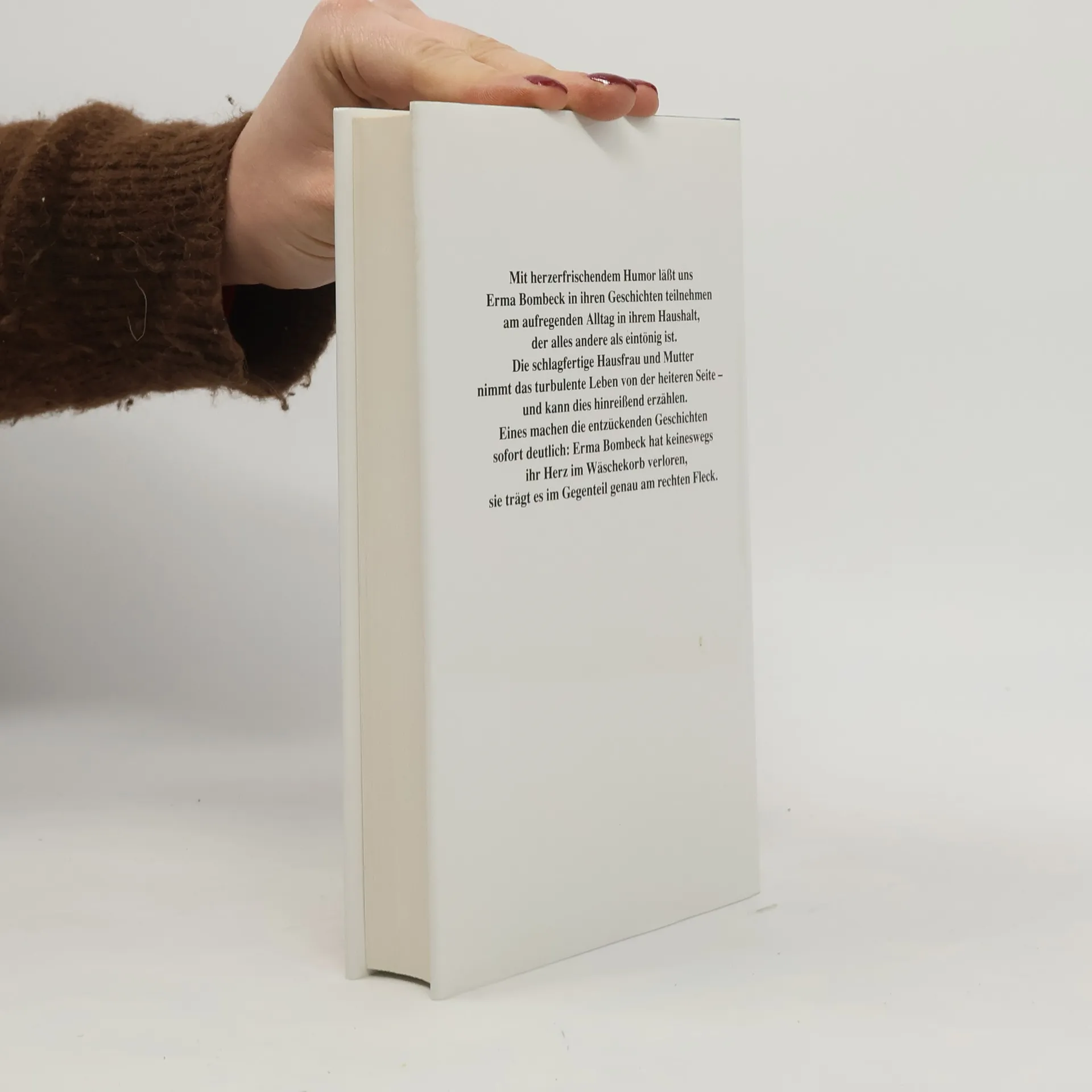 Eigentlich beschreibt Erma Bombeck in ihren Büchern nichts anderes als den ganz normalen Wahnsinns-Alltag einer Hausfrau und Mutter. Jahrelang hat sich die Amerikanerin über ihre süßen, jedoch stets zankenden Kinder, über ihren lieben, aber maßlos unordentlichen Ehemann und das ständige Hinterherräumen geärgert, bis sie auf die Idee kam, sich diesen Ärger von der Seele zu schreiben. Das gelang ihr auf so vergnügliche Weise, daß ihre Bücher heute auf der ganzen Welt erfolgreich sind. Allein in Deutschland wurden bisher über 2 Millionen Exemplare verkauft.