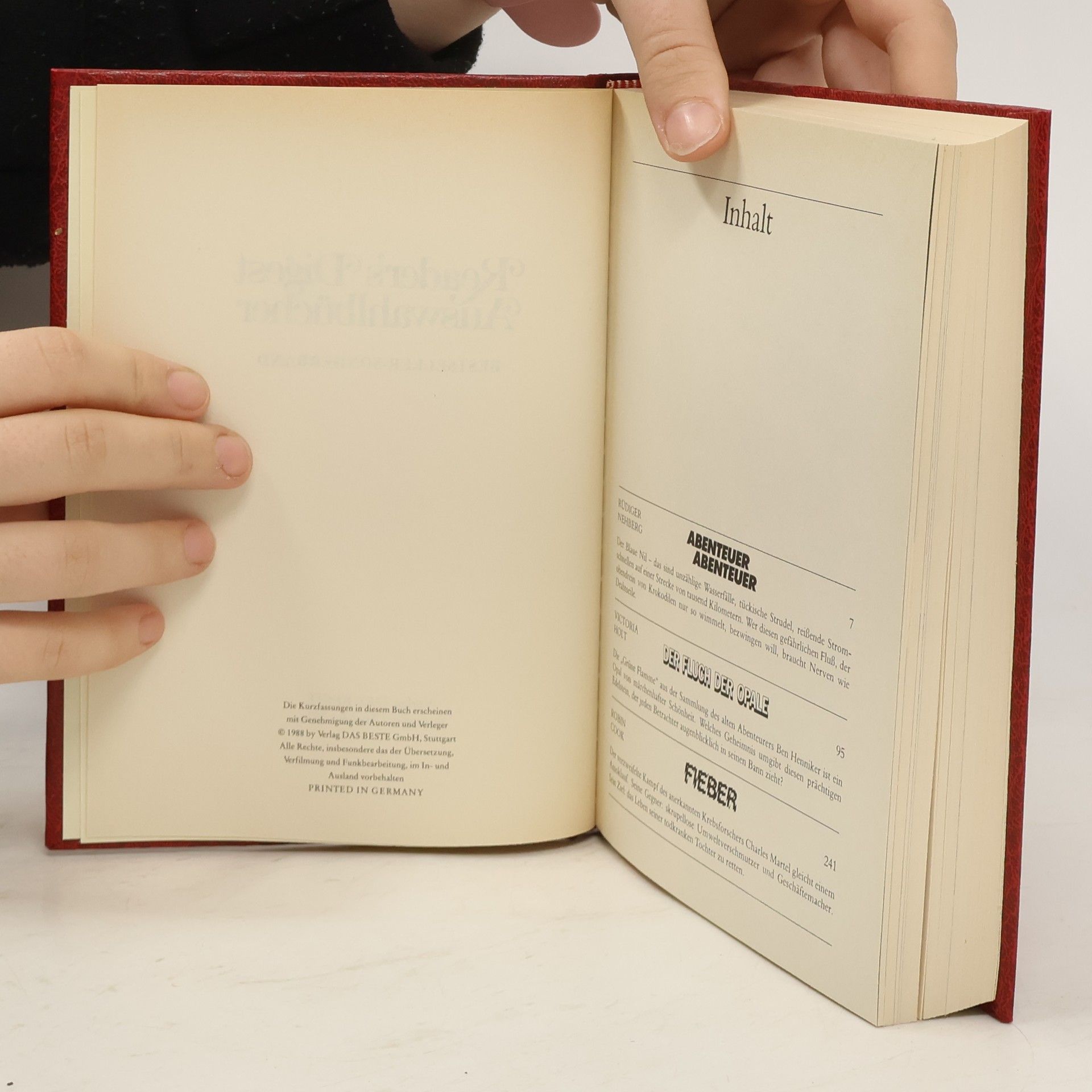 Reader's Digest Auswahlbücher. Abenteuer Abenteuer. Der Fluch der Opale. Fieber, Rüdiger Nehberg, Eleanor Burford, Robin Cook