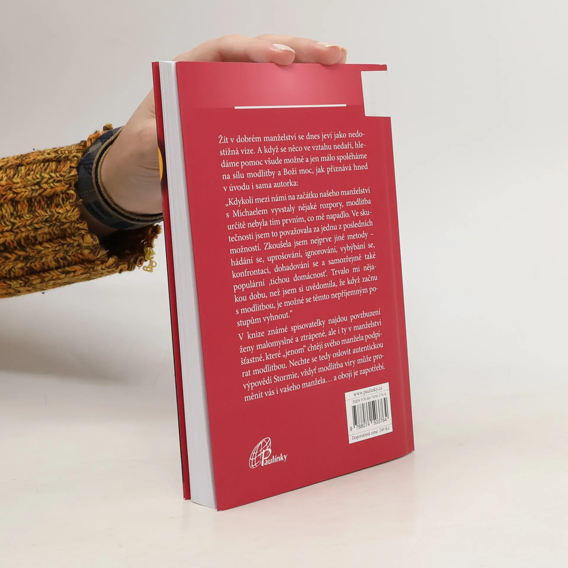 Žít v dnešní době v úžasném manželství se jeví mnohé z žen jako nedostižná vize. Jak málo v takové věci věří v sílu modlitby a Boží moc. Autorka zkoušela řešit své problémy v manželství různými metodami – hádáním se, uprošováním, ignorováním, vyhýbáním se, konfrontací, dohadováním se a také populární »tichou domácností«.Trvalo jí, než si uvědomila, že je třeba začít s modlitbou. Nechme se tedy my, manželky někdy zoufalé, jindy trpící, ale i ty šťastné, které by rády „jen“ podpořily modlitbou svého manžela, oslovit autentickou výpovědí autorky plnou reálného vidění věcí i vlastních zkušeností s modlitbou, která může proměnit vás, vašeho manžela i celé manželství.