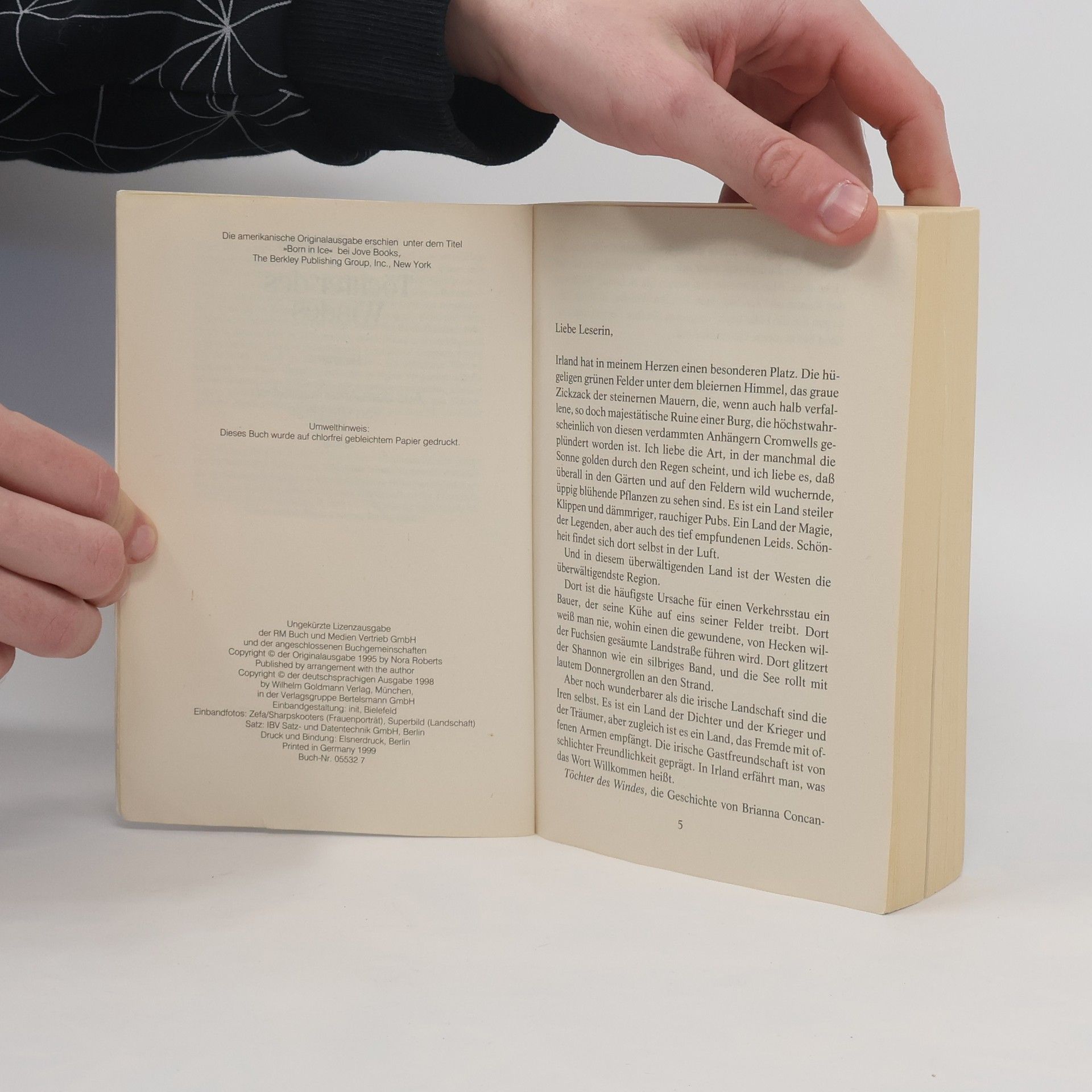 Als die eisigen Winterstürme über Irland hinwegtosen, quartiert sich überraschend ein Gast in der kleinen Pension von Brianna Concannon ein. Grayson Thane, ein amerikanischer Schriftsteller, will den Winter in aller Einsamkeit verbringen. Noch ahnt er nicht, daß manchmal aus dem Eis ein Feuer geboren wird. Nach „Töchter des Feuers“ nun der zweite Band der großen Irland-Trilogie.