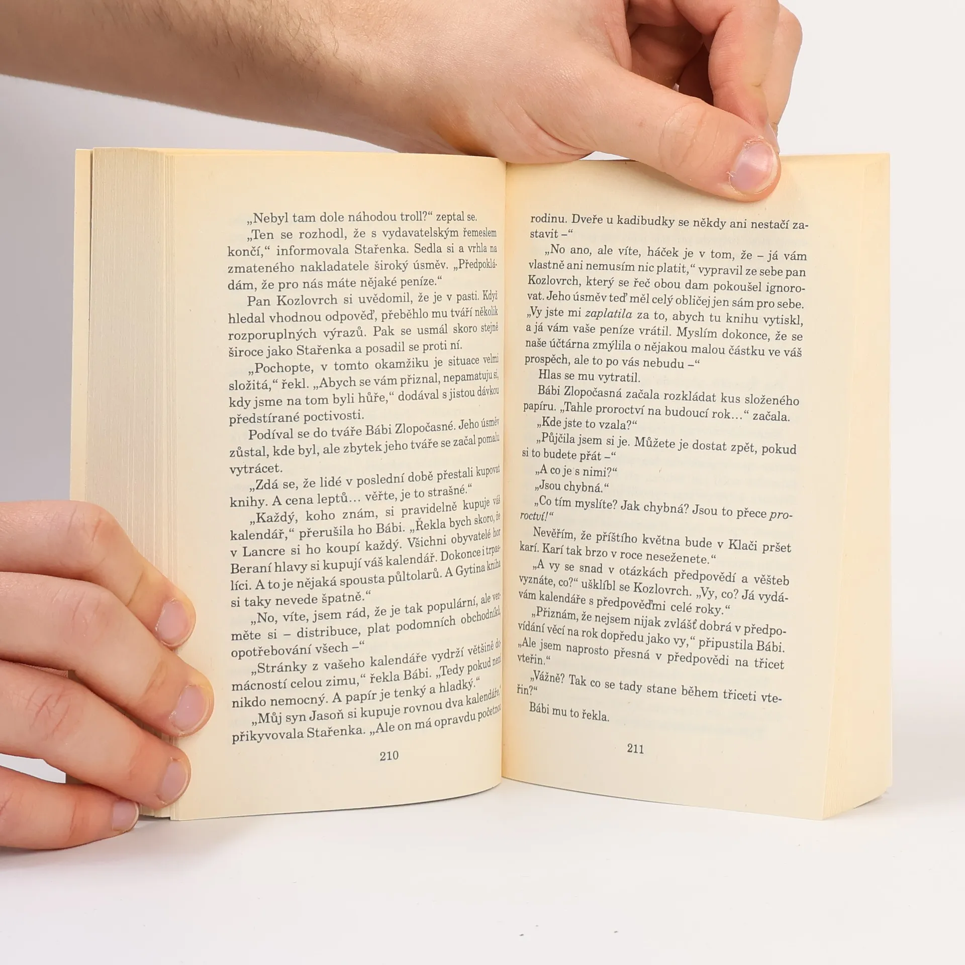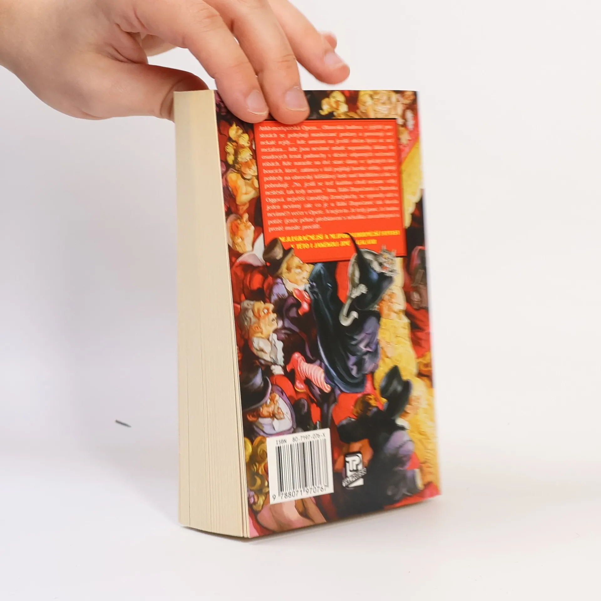 Anhk-morporkská Opera... obrovská budova, v jejíchž prostorách se pohybují maskované postavy a provozují své nekalé rejdy... kde umírání na jevišti občas bývá víc než metafora ... kde jsou nevinné mladé sopranistky lákány do osudových tenat padouchy v děsivě odporných večerních robách. Kde narazíte na dvě staré dámy ve špičatých kloboucích, které zatímco v lóži pojídají burské oříšky, upírají pohledy na obrovský křišťálový lustr nad hledištěm a tiše si pobrukují: "No, jestli se teď každou chvíli nestane velký neštěstí, tak teda nevím." Ano, Bábi Zlopočasná a Stařenka Oggová, největší čarodějky Zeměplochy, se vypravily užít si jeden nevinný (ale co je u Bábi Zlopočasné tak docela nevinné?) večer v Opeře. A nejen to. Je tedy jasné, že budou potíže (jenže pěkné představení s několika zavražděnými si prostě musíte procítit). Úžasná Zeměplocha, kniha 18., přeložil Jan Kantůrek.