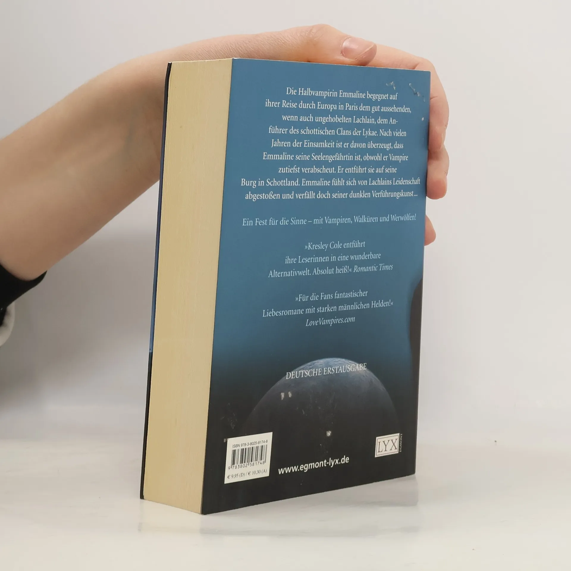 Auf den Spuren ihrer verstorbenen Eltern reist die junge Halbvampirin Emmaline durch Europa. In Paris begegnet ihr der gut aussehende, wenn auch reichlich ungehobelte Lachlain MacRieve, der Anführer des schottischen Klans der Lykae. Nach hunderten Jahren der Einsamkeit ist Lachlain fest davon überzeugt, dass Emmaline seine Seelengefährtin ist, obwohl er Vampire eigentlich zutiefst verabscheut. Er entführt sie auf seine Burg in Schottland, um sie zu seiner Geliebten zu machen. Emmaline fühlt sich von Lachlains ungezähmter Leidenschaft abgestoßen und verfällt doch mehr und mehr seiner dunklen Verführungskunst ...