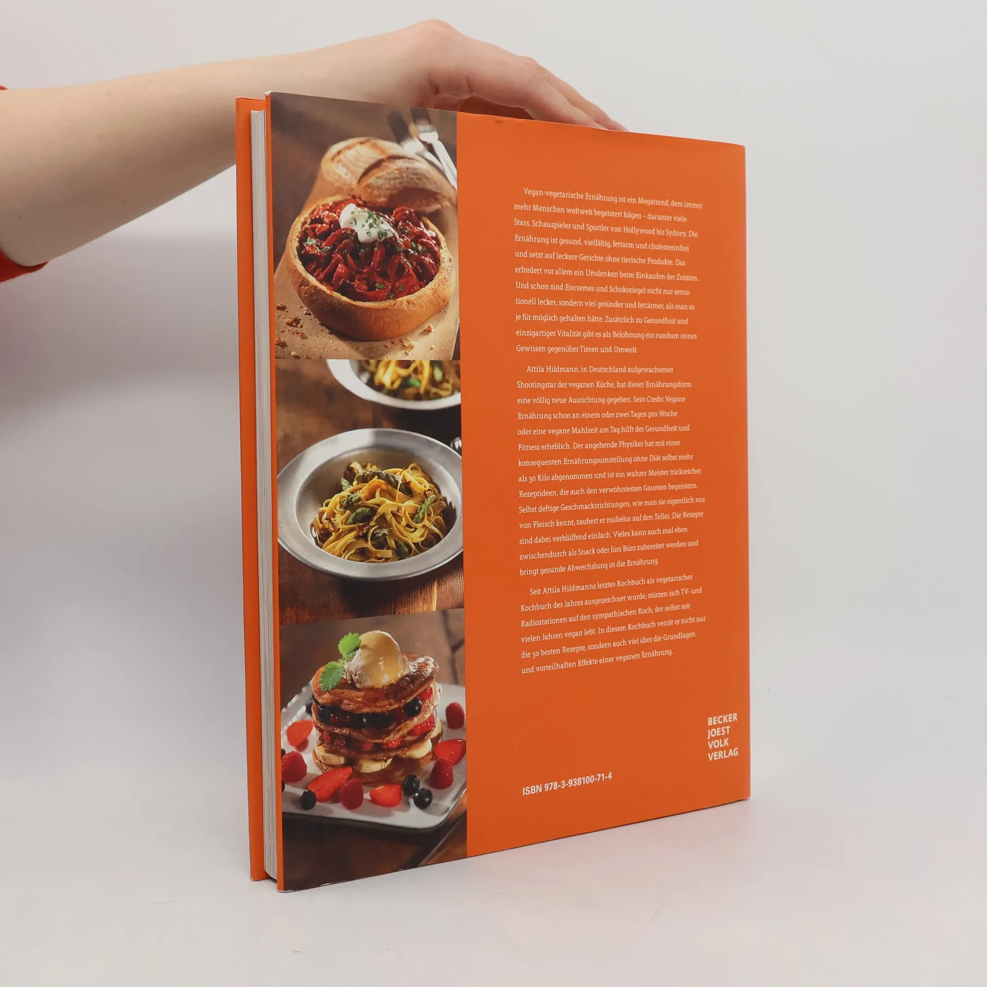 Attila Hildmann hat der veganen Küche eine völlig neue Ausrichtung gegeben und sie mit seinen Rezepten revolutioniert. Sein Credo lautet: schon 1 oder 2 Tage pro Woche oder eine vegane Mahlzeit am Tag führt zu erheblichen Vorteilen für jeden. Während Fleischesser durch tierische Fette – und auch Vegetarier durch Käse – meist dauerhaft zu viel Cholesterin zuführen, ist die vegane Ernährung praktisch cholesterinfrei. Attila Hildmann, angehender Physiker und deutschlands Vegan-Koch Nr. 1, ist ein wahrer Meister trickreicher Rezeptideen, die auch den verwöhntesten Gaumen begeistern. Selbst deftige Geschmacksrichtungen, wie man sie eigentlich nur von Fleisch kennt, zaubert er mühelos auf den Teller. Die Rezepte sind dabei verblüffend einfach und er fordern nur ein Umdenken beim Einkauf der Zutaten. Vieles kann auch mal eben zwischendurch als Snack oder fürs Büro zubereitet werden. Attila Hildmann selbst lebt seit vielen Jahren vegan und hat seitdem ohne Entbehrungen über 25 Kilo abgenommen. In diesem Kochbuch verrät er nicht nur die 50 besten Rezepte sondern auch viel über die Grundlagen und vorteilhaften Effekte einer veganen Ernährung.