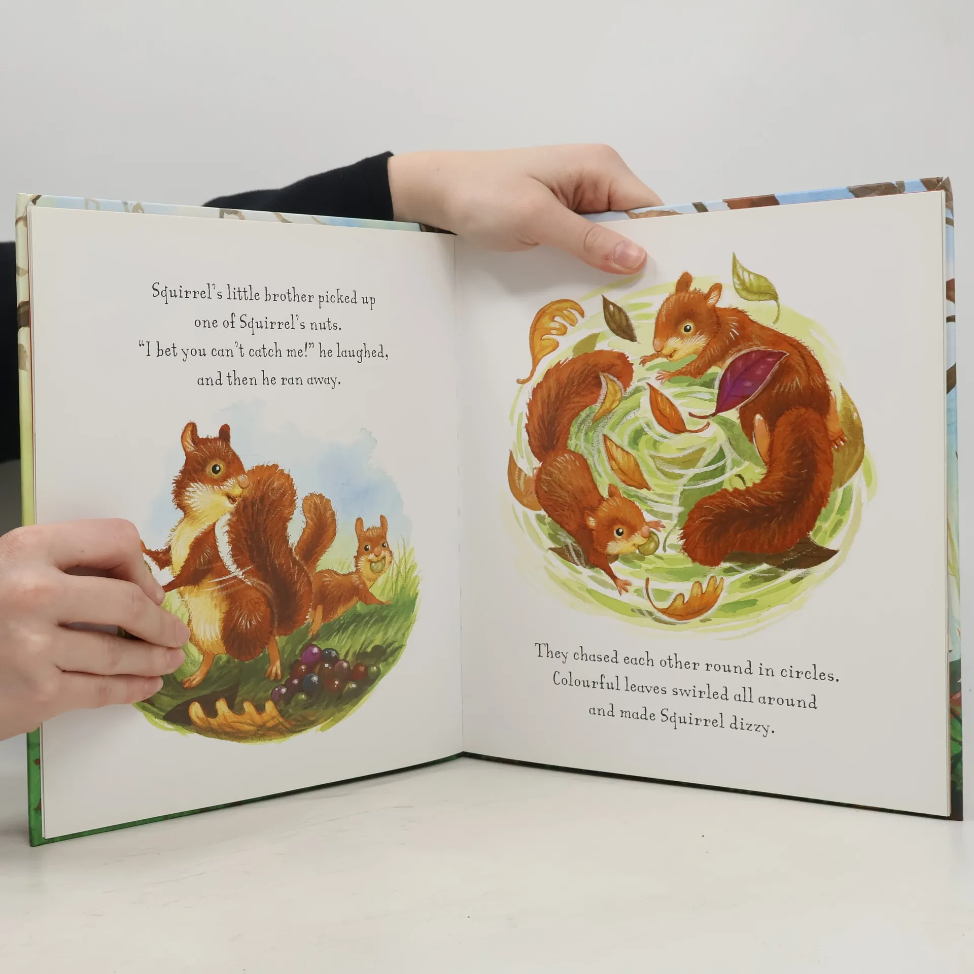 Squirrel loves autumn. He chases the swirling leaves and collects food with his little brother. But Squirrel has so much fun that he forgets where he put his food ..
