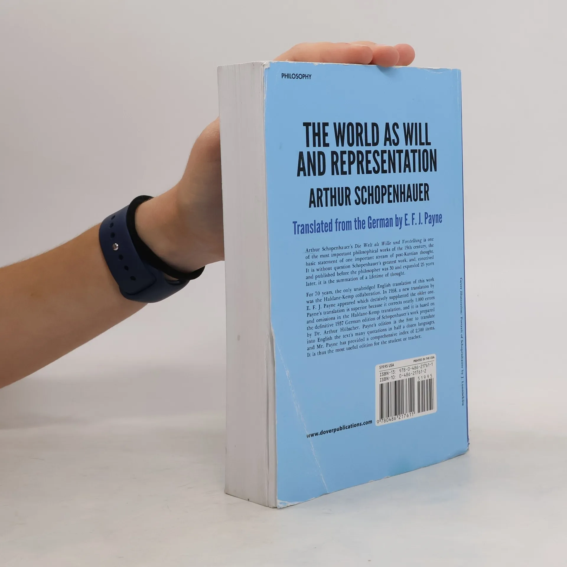 Arthur Schopenhauer's Die Welt als Wille und Vorstellung is one of the most important philosophical works of the 19th century, the basic statement of one important stream of post-Kantian thought. It is without question Schopenhauer's greatest work, and, conceived and published before the philosopher was 30 and expanded 25 years later, it is the summation of a lifetime of thought. For 70 years, the only unabridged English translation of this work was the Haldane-Kemp collaboration. In 1958, a new translation by E. F. J. Payne appeared which decisively supplanted the older one. Payne's translation is superior because it corrects nearly 1,000 errors and omissions in the Haldane-Kemp translation, and it is based on the definitive 1937 German edition of Schopenhauer's work prepared by Dr. Arthur Hubscher. Payne's edition is the first to translate into English the text's many quotatioins in half a dozen languages, and Mr. Payne has provided a comprehensive index of 2,500 items. It is thus the most useful edition for the student or teacher.