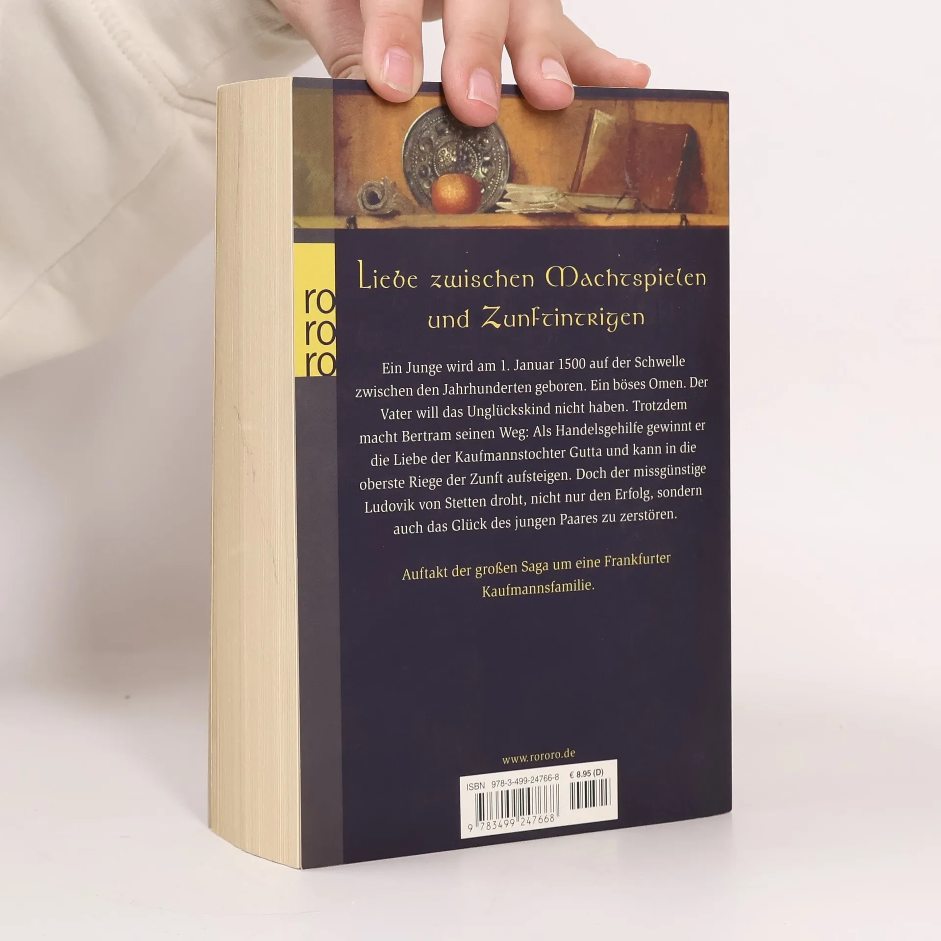 Liebe zwischen Machtspielen und ZunftintrigenEin Junge wird am 1. Januar 1500 auf der Schwelle zwischen den Jahrhunderten geboren. Ein böses Omen. Der Vater will das Unglückskind nicht haben. Trotzdem macht Bertram seinen Weg: Als Handelsgehilfe gewinnt er die Liebe der Kaufmannstochter Gutta und kann in die oberste Riege der Zunft aufsteigen. Doch der missgünstige Ludovik von Stetten droht, nicht nur den Erfolg, sondern auch das Glück des jungen Paares zu zerstören.Auftakt der großen Saga um eine Frankfurter Kaufmannsfamilie.
