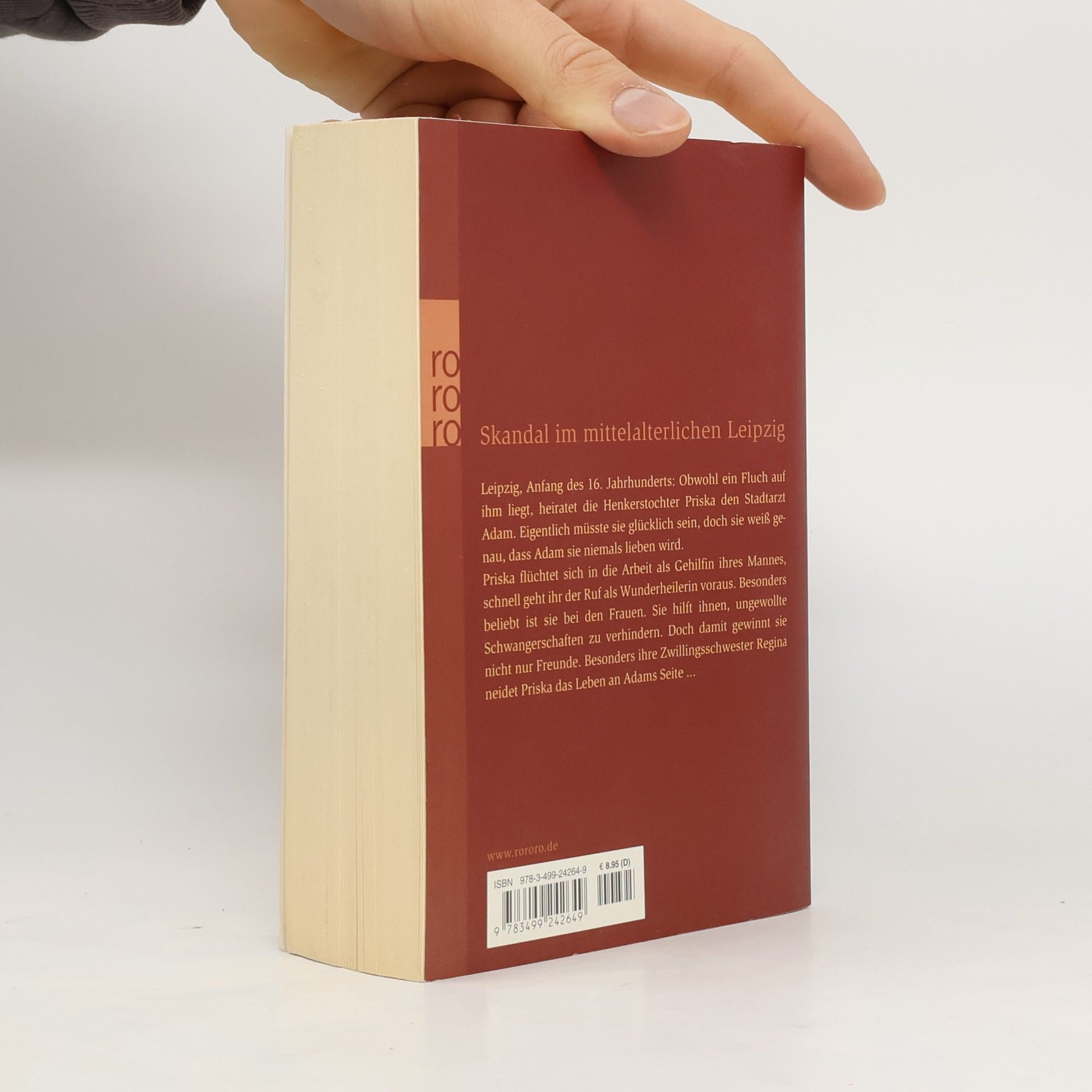 Skandal im mittelalterlichen LeipzigLeipzig, Anfang des 16. Jahrhunderts: Obwohl ein Fluch auf ihm liegt, heiratet die Henkerstochter Priska den Stadtarzt Adam. Eigentlich müsste sie glücklich sein, doch sie weiß genau, dass Adam sie niemals lieben wird.Priska flüchtet sich in die Arbeit als Gehilfin ihres Mannes, schnell geht ihr der Ruf als Wunderheilerin voraus. Besonders beliebt ist sie bei den Frauen. Sie hilft ihnen, ungewollte Schwangerschaften zu verhindern. Doch damit gewinnt sie nicht nur Freunde. Besonders ihre Zwillingsschwester Regina neidet Priska das Leben an Adams Seite ...