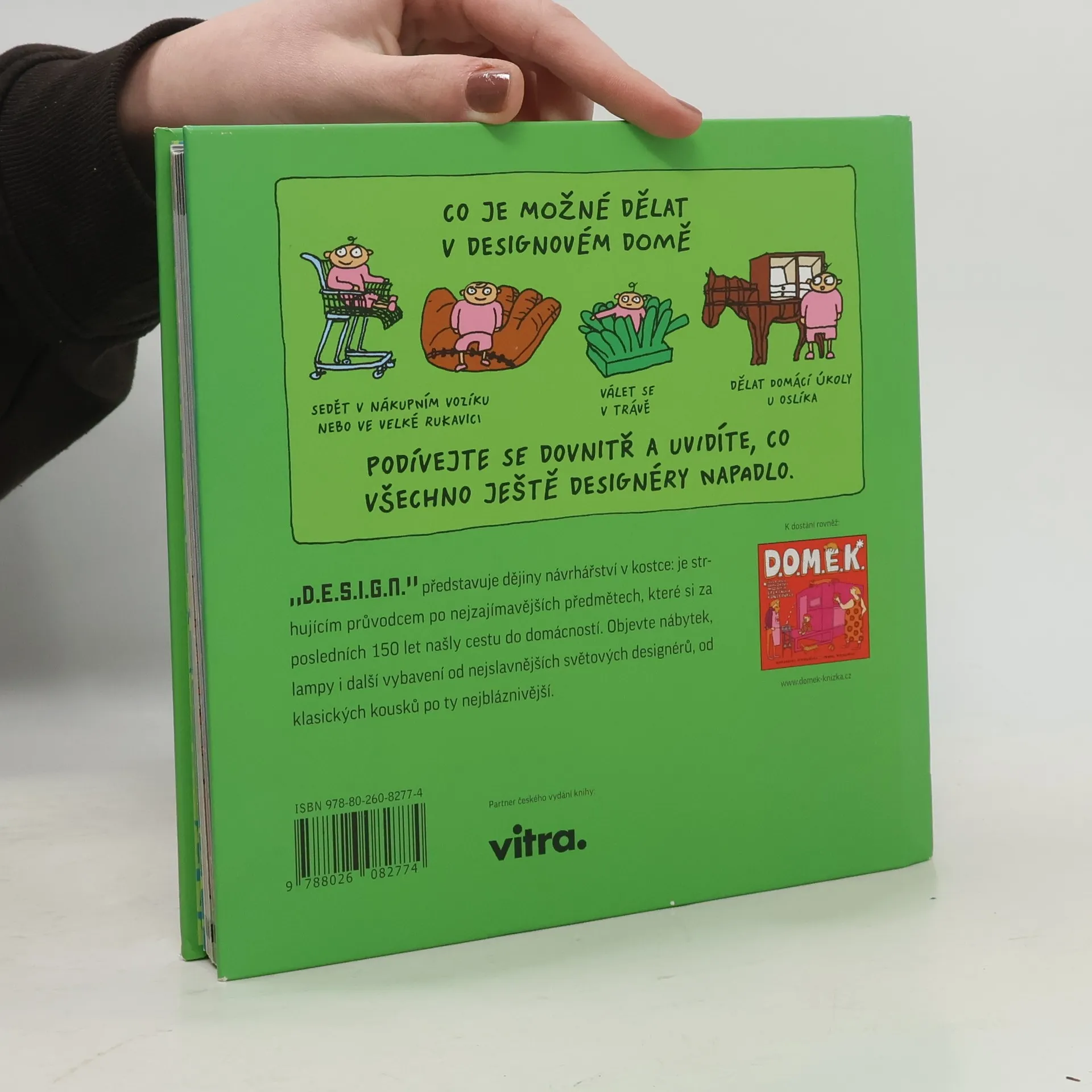 "Domácí encyklopedie seriózních i groteskních návrhů" Kniha D.E.S.I.G.N. je výběrem 70 realizovaných návrhů od 70 předních světových návrhářů. Předměty jsou v ní řazeny chronologicky podle data svého vzniku: začíná se dnes již ikonickou židlí "Model 14" od Michaela Thoneta z roku 1859 a končí regálem "Free Port" od Martiho Guixé z roku 2011. V celoilustrované knize se děti dozví, jak se ten který předmět jmenuje, kdo je jeho autorem, odkud pochází, k čemu slouží, z čeho je vyrobený, jak se jmenuje firma, která ho vyrábí a proč byl navržený tak, jak navržený byl. A to vše lehkou a chytrou nadsázkou.