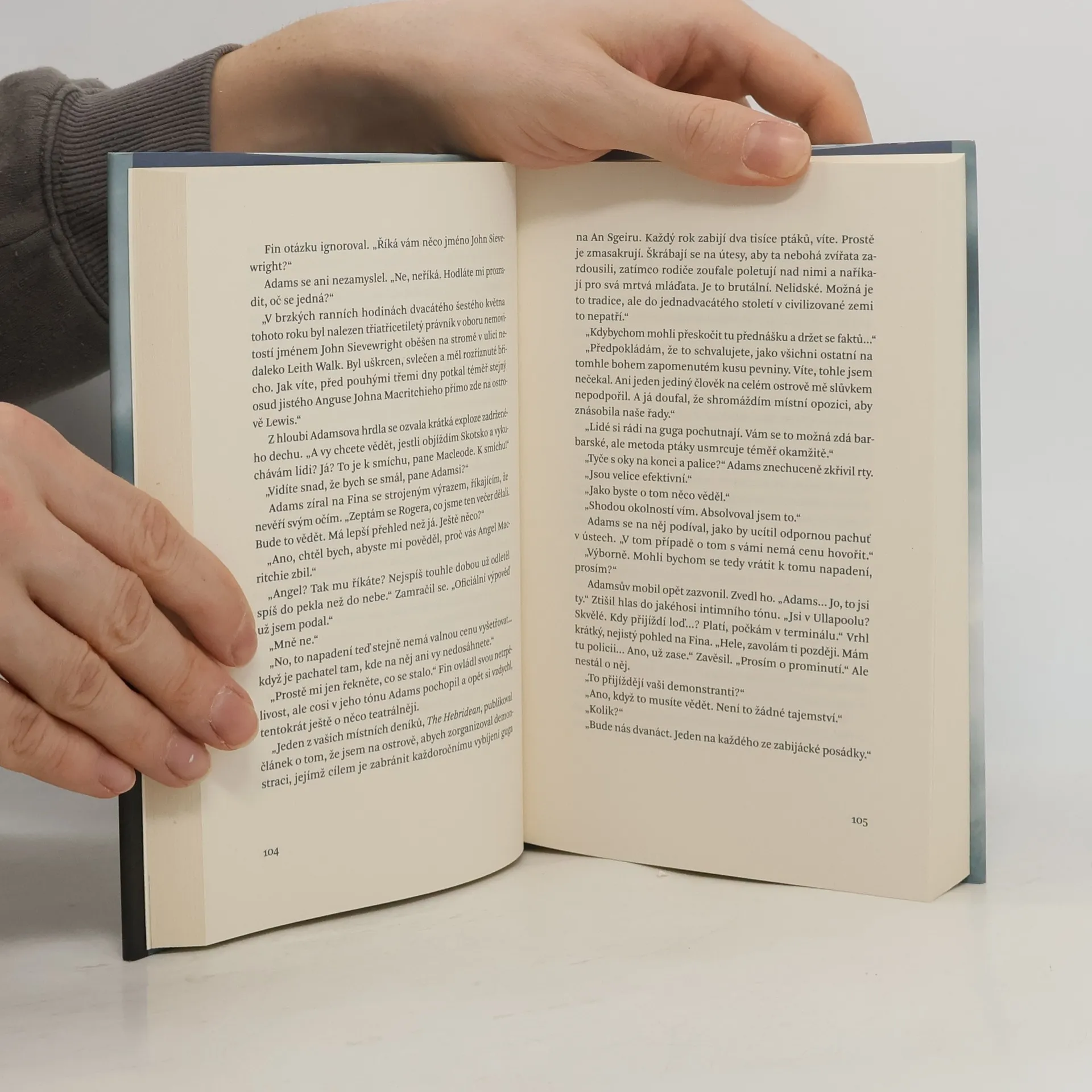 Skotský ostrov Lewis je krásné, ale drsné místo bez stromů, bičované větry a pokryté vřesovišti. Místní obyvatelé se potýkají s těžkostmi, zatímco pod zástěrkou víry přežívají staré pohanské hodnoty a touha po pomstě. Na ostrov přijíždí policejní detektiv Fin Macleod, poznamenaný nedávnou ztrátou syna, aby se podílel na vyšetřování brutální vraždy, která má paralely s jiným případem v Edinburghu. Fin zde prožil dětství, a proto je vyšetřování také jeho cestou do minulosti. Setkává se s dávnými přáteli, včetně Artaira, který si vzal jeho první lásku, Marsaili. Většina lidí ho však nevítá s otevřenou náručí. Fin netuší, že klíč k případu by mohl odemknout tajemství, které se ho osobně týká. Jakou roli hraje jeho dávná účast na tradiční výpravě na lov terejů na nebezpečné skále An Sgeir? Tragédie, jež se tam odehrála, by mohla vést k další oběti. Tento detektivní román, odehrávající se v kulisách, které připomínají velké anglické romány devatenáctého století, se řadí do kategorie literary crime, psané kvalitním literárním stylem, který překračuje hranice žánru a získává globální úspěch.