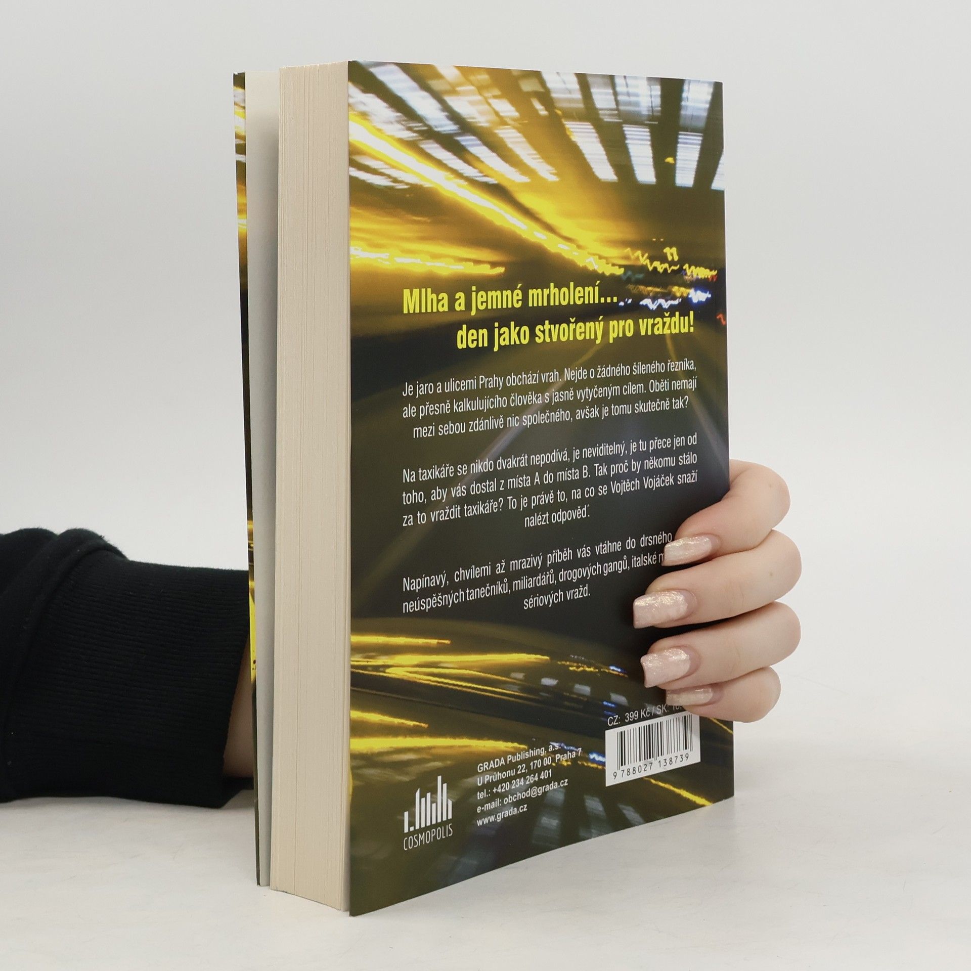 Den jako stvořený pro vraždu! Mrholení a mlha.Je jaro a ulicemi Prahy obchází vrah. Nejde o žádného šíleného řezníka, ale přesně kalkulujícího člověka s jasně vytyčeným cílem. Oběti nemají zdánlivě mezi sebou nic společného, avšak je tomu skutečně tak? Jedná se o loupežná přepadení nemilosrdného chladnokrevného lupiče, nebo snad existuje jiný důvod, proč museli právě tito muži zemřít?Na taxikáře se nikdo dvakrát nepodívá, je neviditelný, je tu jen od toho, aby vás dostal z místa A do místa B. Proč by někomu stálo za to vraždit taxikáře? To je právě to, na co se Vojtěch Vojáček snaží nalézt odpověď.Poutavý, chvílemi až mrazivý příběh vás vtáhne do světa drogových gangů, neúspěšných tanečníků, miliardářů, italské módy a sérií vražd.