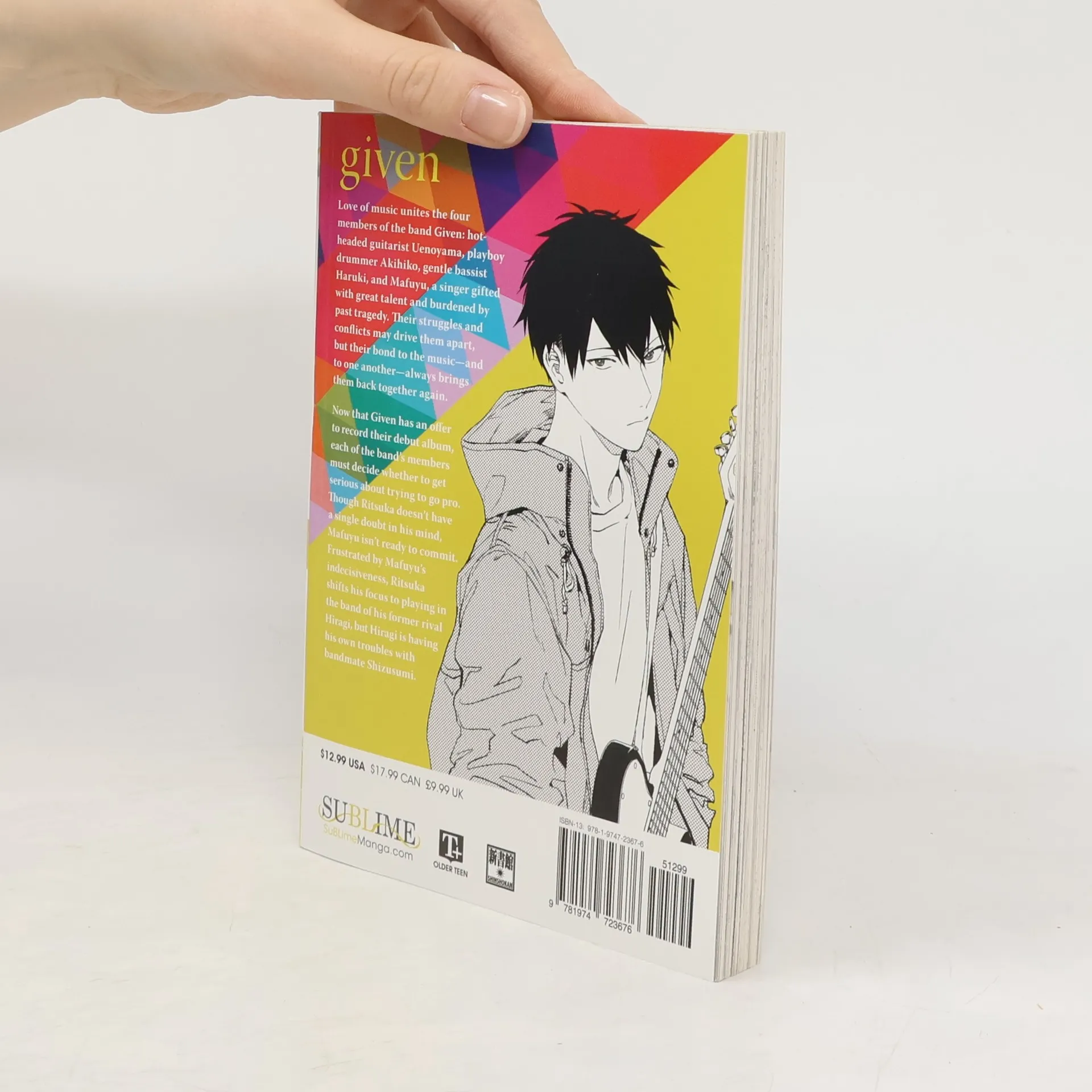 Sometimes a song can save your life. Love of music unites the four members of the band Given: hotheaded guitarist Uenoyama, playboy drummer Akihiko, gentle bassist Haruki, and Mafuyu, a singer gifted with great talent and burdened by past tragedy. Their struggles and conflicts may drive them apart, but their bond to the music—and to one another—always brings them back together again. Now that Given has an offer to record their debut album, each of the band’s members must decide whether to get serious about trying to go pro. Though Ritsuka doesn’t have a single doubt in his mind, Mafuyu isn’t ready to commit. Frustrated by Mafuyu’s evasion, Ritsuka shifts his focus to playing in former rival Hiragi’s band, but Hiragi is having his own troubles with bandmate Shizusumi.