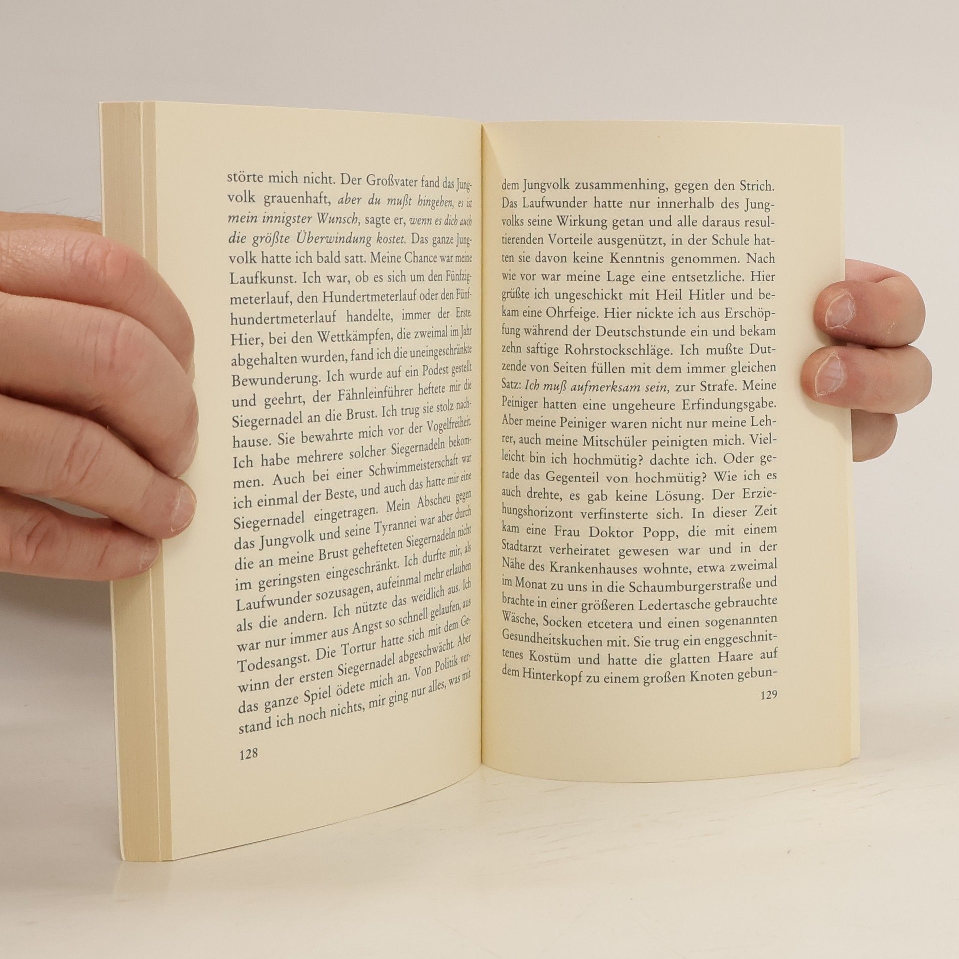 Die Schande einer unehelichen Geburt, die Alltagssorgen der Mutter und ihr ständiger Vorwurf: Du hast mein Leben zerstört! überschatten Thomas Bernhards Kindheitsjahre. Ein wahres Martyrium begann mit dem Eintritt in die Schule, in der sich der begabte Junge von Anfang an langweilte. es waren Jahre fern der Idylle, wenn auch nicht ohne Augenblicke des Hochgefühls. Und es war die Zeit des Nationalsozialismus und des Krieges.