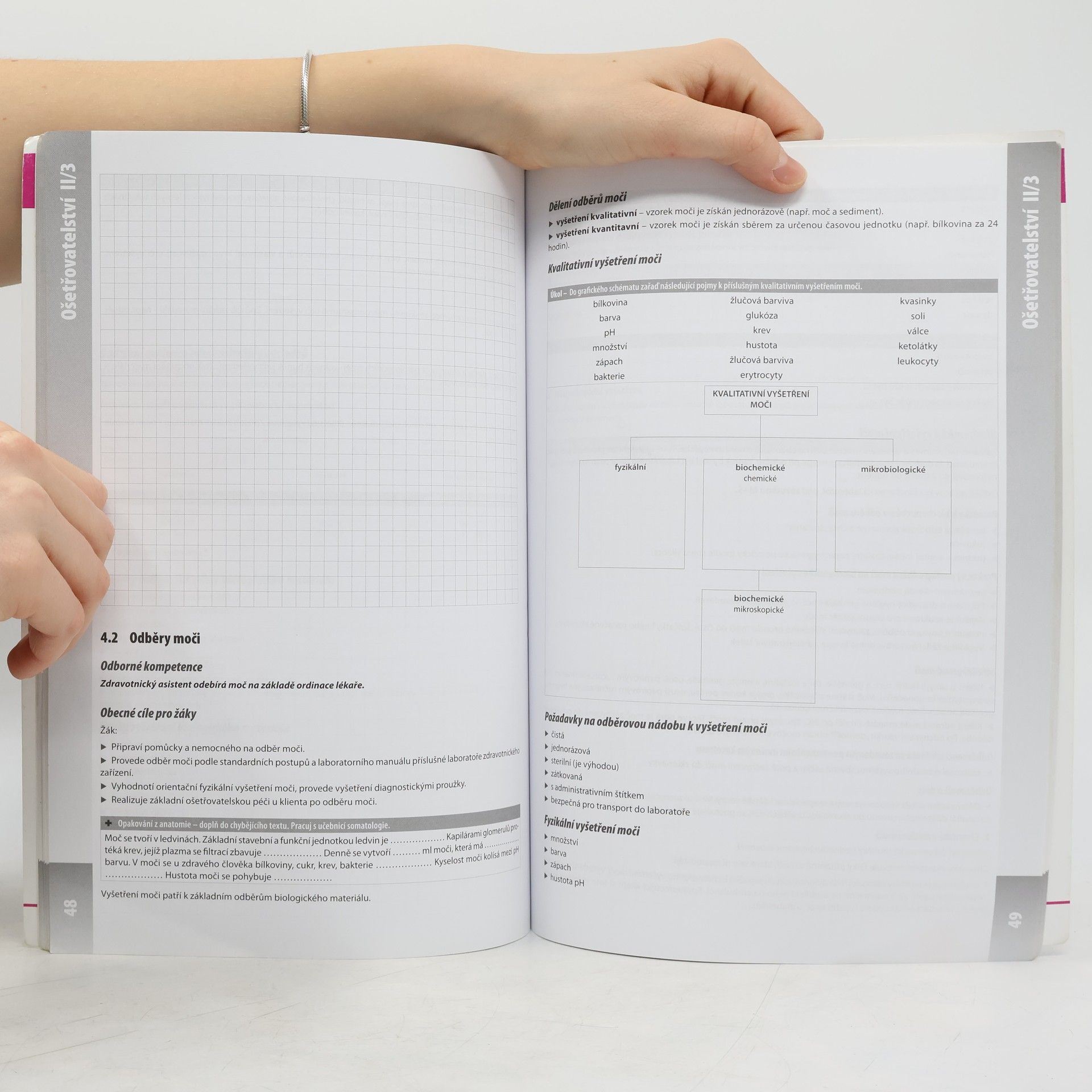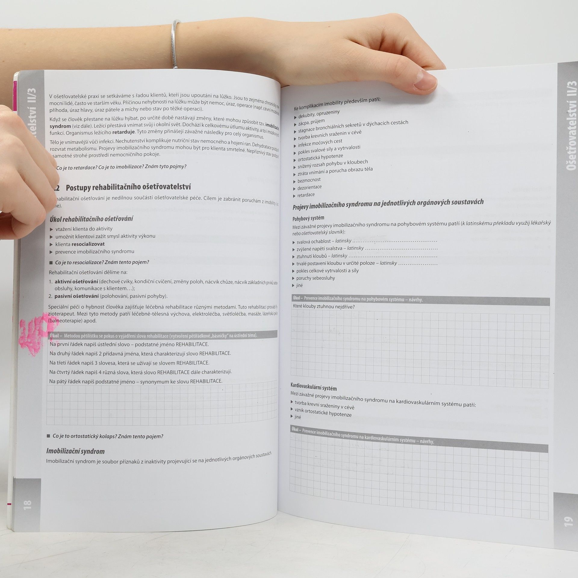 Převazy ran, rehabilitace, aplikace tepla a chladu, odběry biologického materiálu a řadu dalších témat naleznete ve 3. dílu pracovních sešitů pro 2. ročník. Obsažená témata navazují na učebnici Ošetřovatelství pro zdravotnické asistenty - 2. ročník a vhodným způsobem i moderními aktivizačními metodami podporují schopnost žáka třídit a hodnotit získané informace. Pracovní sešit II/3. díl je jedním ze série těchto moderních výukových materiálů. Akceptuje žákovu kreativitu, styl jeho učení a úroveň kritického myšlení. Podporuje a rozvíjí schopnost samostudia u žáků, je vhodnou pomůckou k procvičování získaných vědomostí v předmětu Ošetřovatelství a pomáhá vyučujícím pracovat se žáky kreativněji a efektivněji. Pracovní sešit nabízí třífázový model učení - evokace (co už žák k tématu ví), uvědomění si významu (nové informace) a reflexe (sjednocení a třídění poznatků společně s učitelem). Na vydání publikace se významně podílela Česká asociace sester.