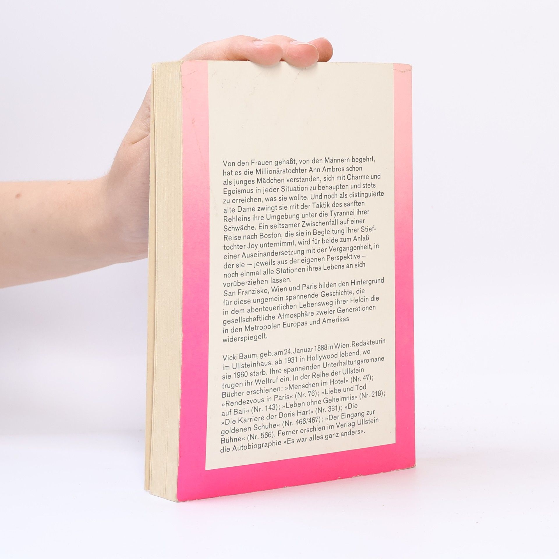 »Vor Rehen wird gewarnt.« Diesen Satz, den er einmal in einem Wildpark gelesen hat, kann Rechtsanwalt Watts nur jedem entgegnen, der von der zarten und aufopferungsvollen Ann Ambros spricht. Denn so rehäugig Ann auch durchs Leben geht, so rücksichtslos nimmt sie sich, was sie will. Sie verführt den Mann ihrer Schwester, treibt nicht nur San Francisco, sondern auch Wien zur Verzweiflung, sorgt dafür, dass sie stets das Beste bekommt und dass man ihr noch dankbar ist, wenn man ihr das letzte Hemd schenken darf. Vicki Baum erzählt von einer Frau, der man nicht in die Quere kommen will – und deren Bann man sich doch bis zur letzten Seite nicht entziehen kann.