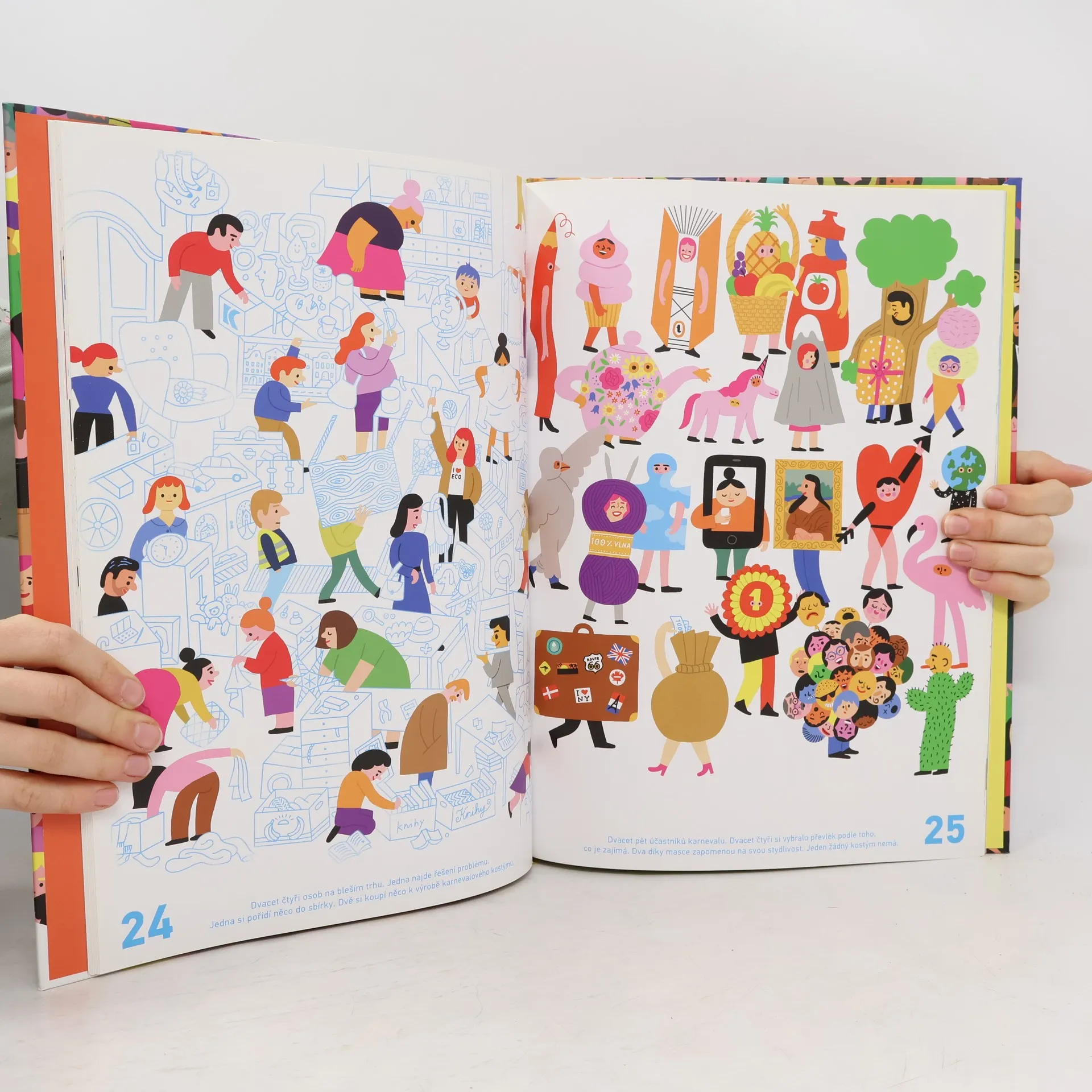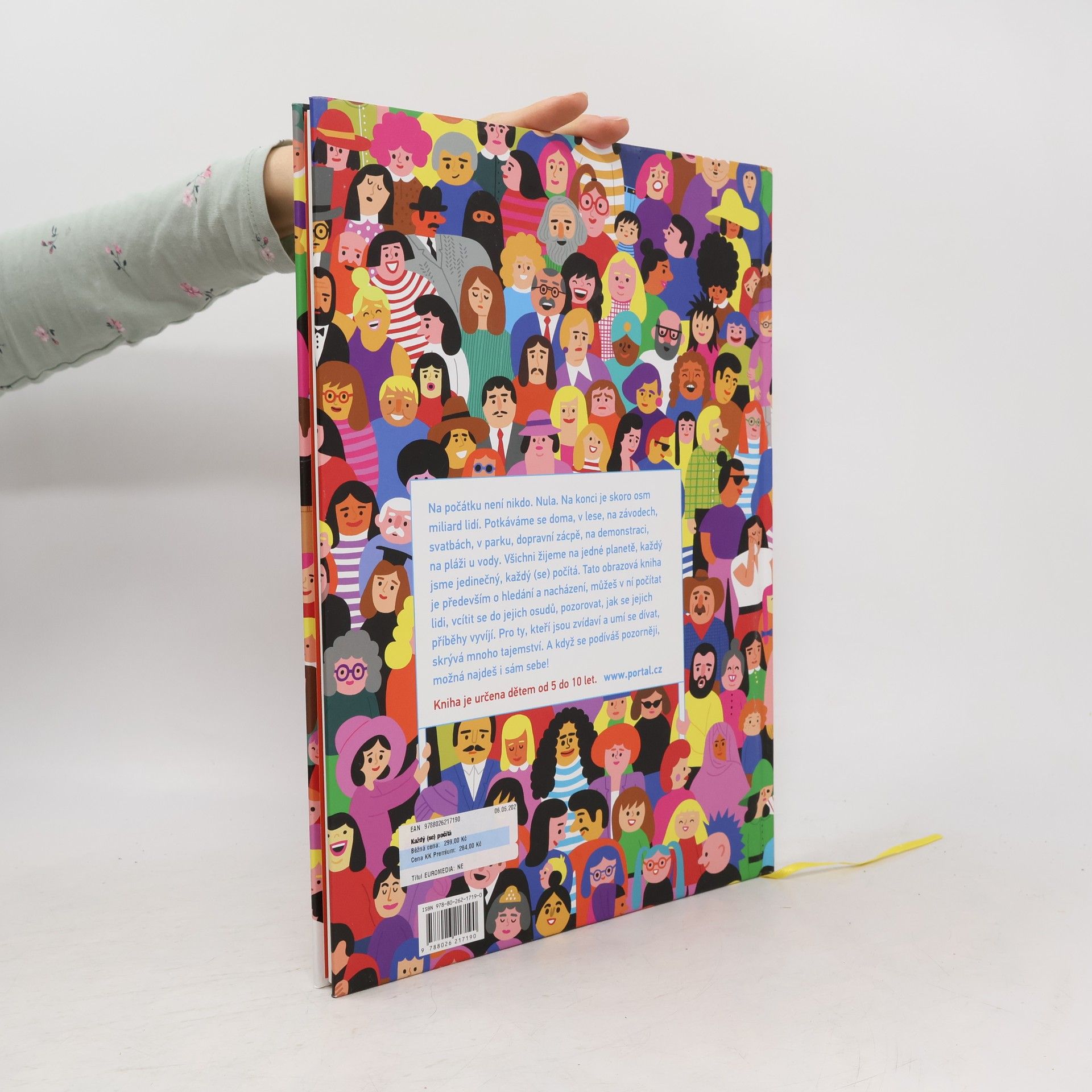 Na počátku není nikdo. Nula. Na konci je sedm a půl miliardy lidí. Potkáváme se doma, v lese, na závodech, svatbách, v parku, v dopravní zácpě, na demonstraci, na pláži u vody. A pokud ne, tak se, doufejme, zase brzy potkávat budeme. Každá strana či dvoustrana knihy je zaměřena na počítání (od 0 do 35, následně 45, 50, 60, 65, 75, 85, 90, 100, 135, 200, 400, 1000, 7 500 000 000). Každé číslo v knize je doplněno krásnými a vtipnými ilustracemi a doprovodnými otázkami založenými na hledání v obrázku, ale i na sociálním čtení, vymýšlení příběhu, snění, fantazii). Všichni žijeme na jedné planetě, každý jsme jedinečný, každý (se) počítá. A jedením z nich jsi ty! Kniha ve světě získala cenu Nordic Council Literary Prize, cenu za nejhezčí vizuální zpracování, nejhezčí knihu roku 2018, byla přeložena do více než 20 jazyků. Kniha je určena dětem od 5–10 let.