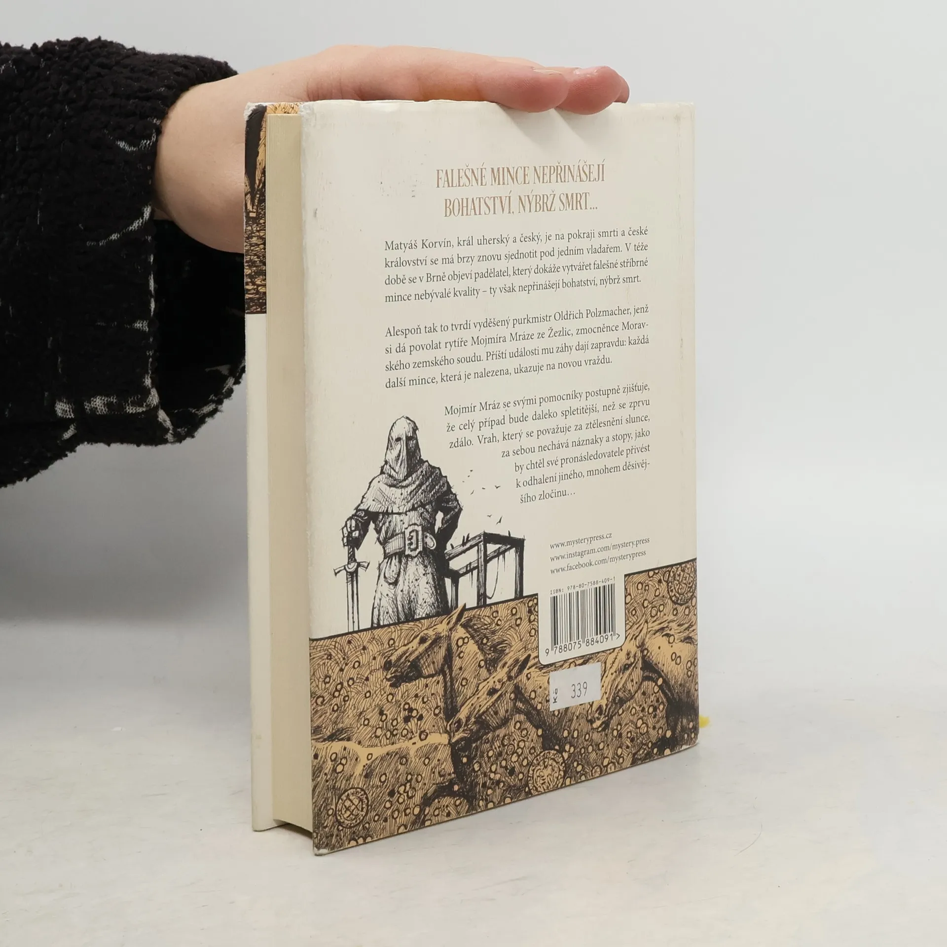 FALEŠNÉ MINCE NEPŘINÁŠEJÍ BOHATSTVÍ, NÝBRŽ SMRT…Matyáš Korvín, král uherský a český, je na pokraji smrti a české království se má brzy znovu sjednotit pod jedním vladařem. V téže době se v Brně objeví padělatel, který dokáže vytvářet falešné stříbrné mince nebývalé kvality – ty však nepřinášejí bohatství, nýbrž smrt. Alespoň tak to tvrdí vyděšený purkmistr Oldřich Polzmacher, jenž si dá povolat rytíře Mojmíra Mráze ze Žezlic, zmocněnce Moravského zemského soudu. Příští události mu záhy dají zapravdu: každá další mince, která je nalezena, ukazuje na novou vraždu. Mojmír Mráz se svými pomocníky postupně zjišťuje, že celý případ bude daleko spletitější, než se zprvu zdálo. Vrah, který se považuje za ztělesnění slunce, za sebou nechává náznaky a stopy, jako by chtěl své pronásledovatele přivést k odhalení jiného, mnohem děsivějšího zločinu…