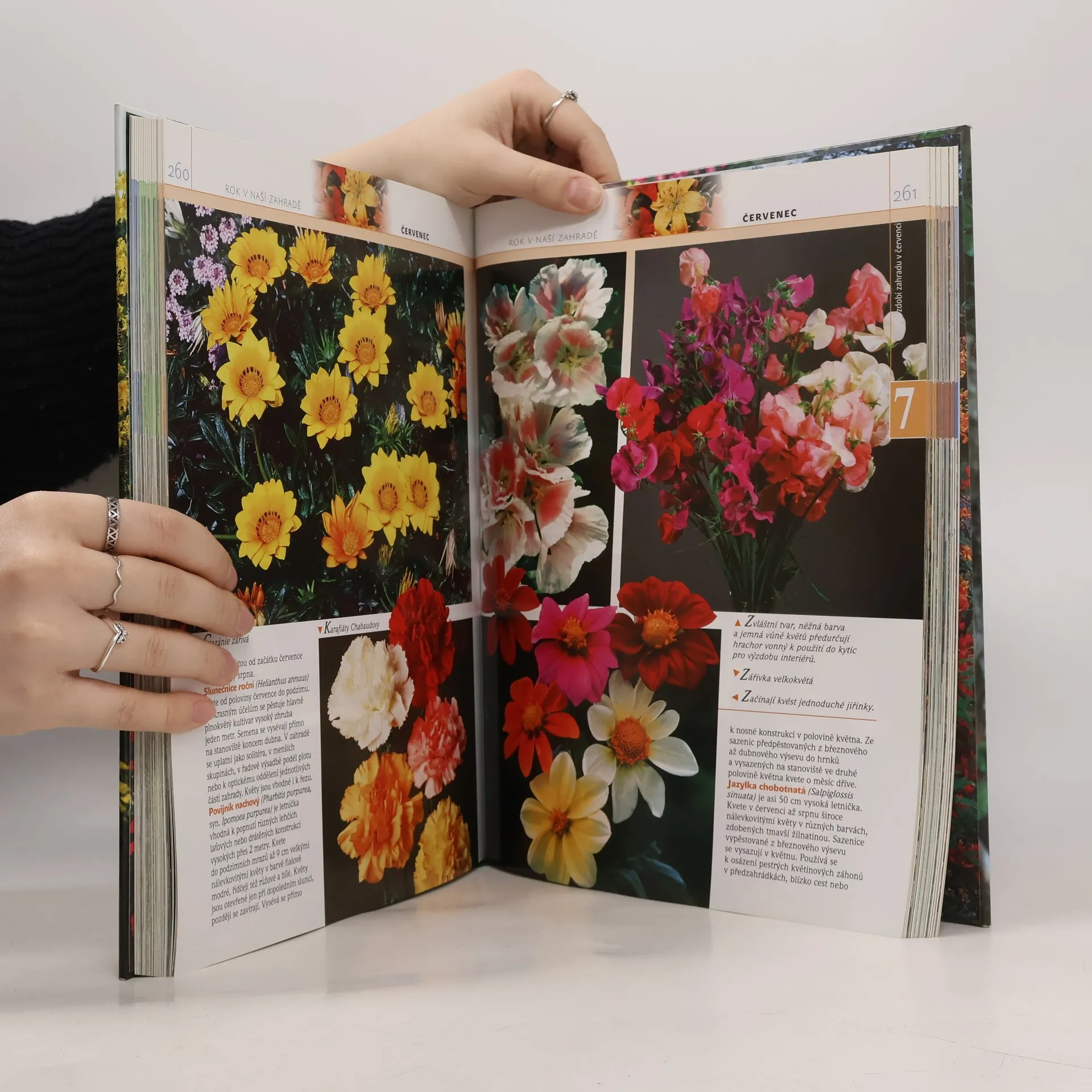 Kniha nabízí čtenáři procházku zahradou během celého roku. V jednotlivých měsících uvádí přehled nejdůležitějších prací, na něž by neměl zapomenout, ukazuje mu krásy, které v zahradě vytvářejí okrasné rostliny a poskytuje rady, jak úspěšně zvládnout složitější úkoly při zakládání, ošetřování a zdokonalování zahrady. Kniha je vybavena množstvím zdařilých instruktivních a ilustračních obrázků a fotografií, jež vhodně doplňují textovou část.