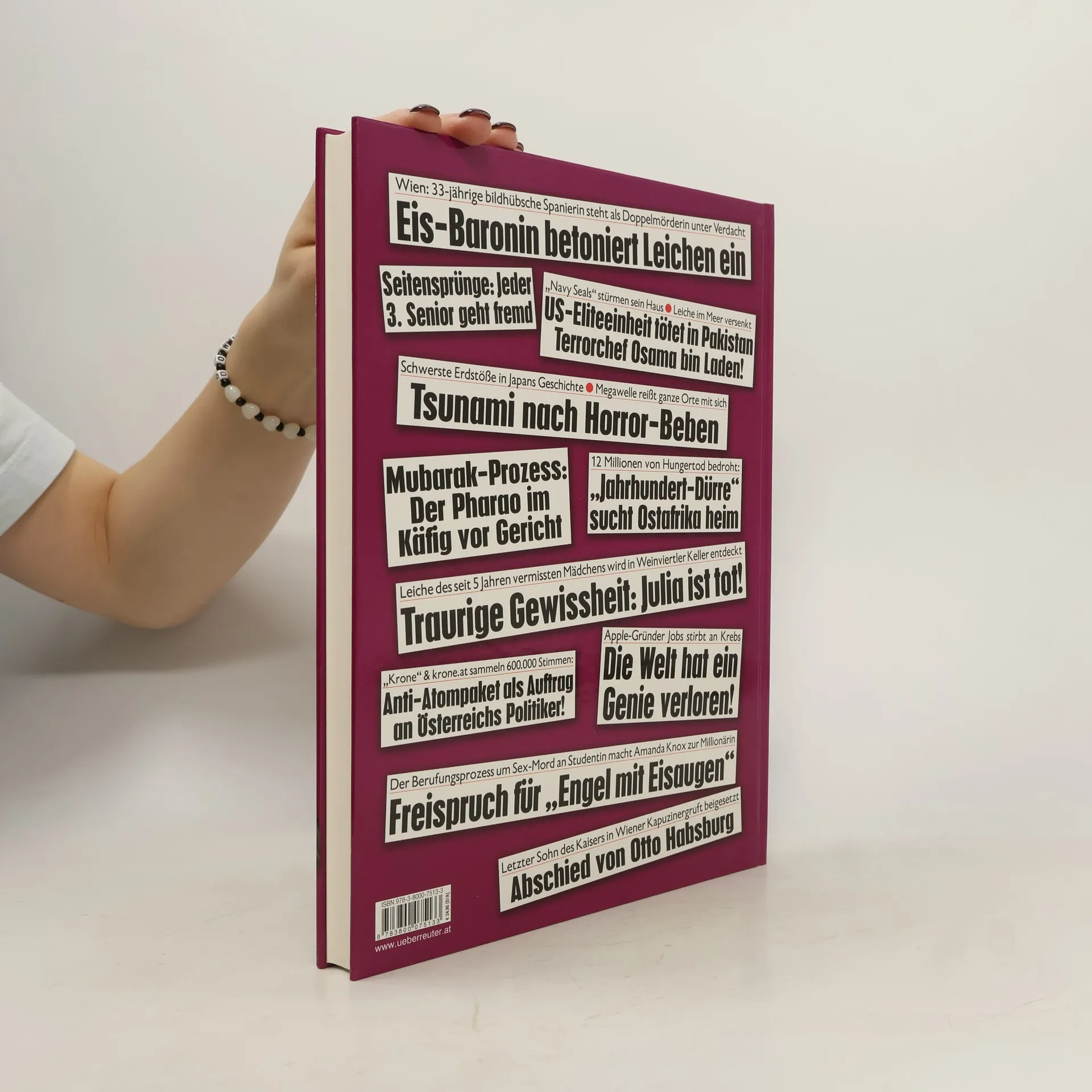 Die Machtkämpfe und die daraus resultierenden Unruhen im arabischen Raum haben zum militärischen Eingreifen des Westens bewegt. Das Erdbeben in Japan und seine noch nicht absehbaren Folgen beunruhigen die ganze Welt. Skandale und Affären erschüttern Österreich und seine Nachbarländer. Natürlich bringt das neue> KroneAdabei<- Geschichten – vom Opernball bis zu den Highlights der internationalen Society. Alles in allem 150 spannende Seiten Zeitgeschichte mit den besten Fotos des Jahres.