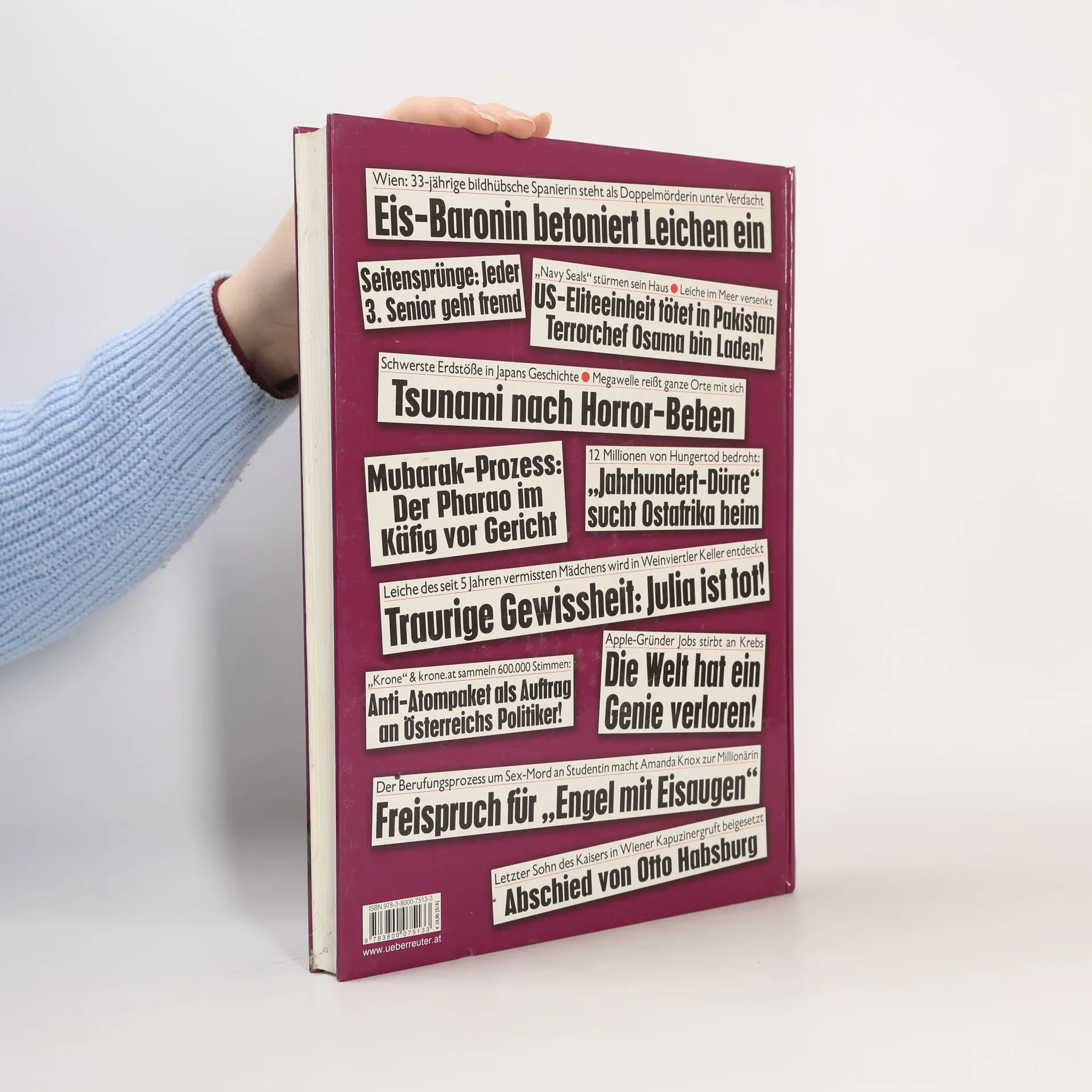 Die Machtkämpfe und die daraus resultierenden Unruhen im arabischen Raum haben zum militärischen Eingreifen des Westens bewegt. Das Erdbeben in Japan und seine noch nicht absehbaren Folgen beunruhigen die ganze Welt. Skandale und Affären erschüttern Österreich und seine Nachbarländer. Natürlich bringt das neue> KroneAdabei<- Geschichten – vom Opernball bis zu den Highlights der internationalen Society. Alles in allem 150 spannende Seiten Zeitgeschichte mit den besten Fotos des Jahres.