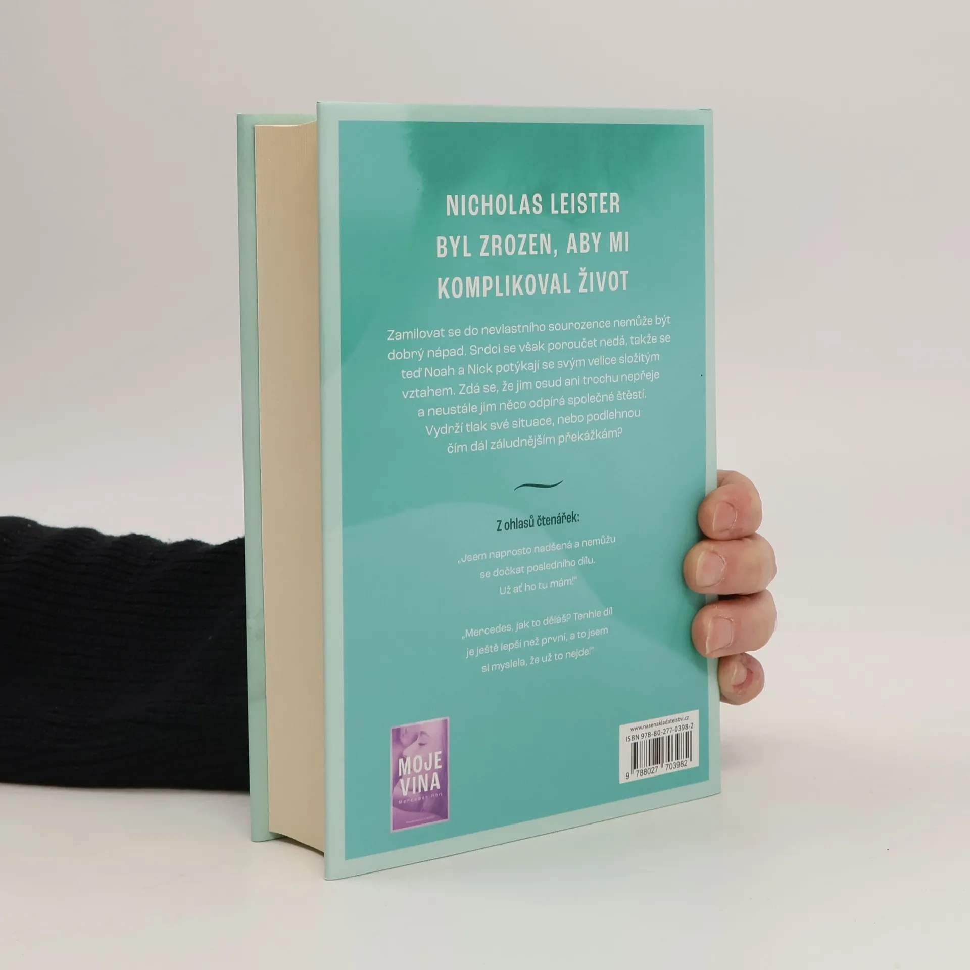 Kniha Tvoje vina, druhý díl romantické trilogie Viníci od Mercedes Ron o drsňákovi s velkým srdcem a hodné dívce s velkou odvahou, obsahuje ještě víc romantiky, zrady a záhad.Když se Noah zamilovala do Nicka, věděla, že jejich vztah nebude snadný: jsou protikladní jako oheň a voda a když jsou spolu, létají nebezpečné jiskry... naprosto ve všech směrech.Dosud byla jejich vášeň ještě silnější než jejich hrdost, ale věkový rozdíl, vysoká škola, večírky, rodiče a stíny z minulosti, které oba pronásledují, je znovu a znovu zkoušejí jako časovaná bomba, která hrozí výbuchem.Je Noah opravdu připravena čelit svému strachu a znovu někomu důvěřovat?Dokáže se Nicholas oprostit od své minulosti a otevřít své srdce jedné jediné osobě?