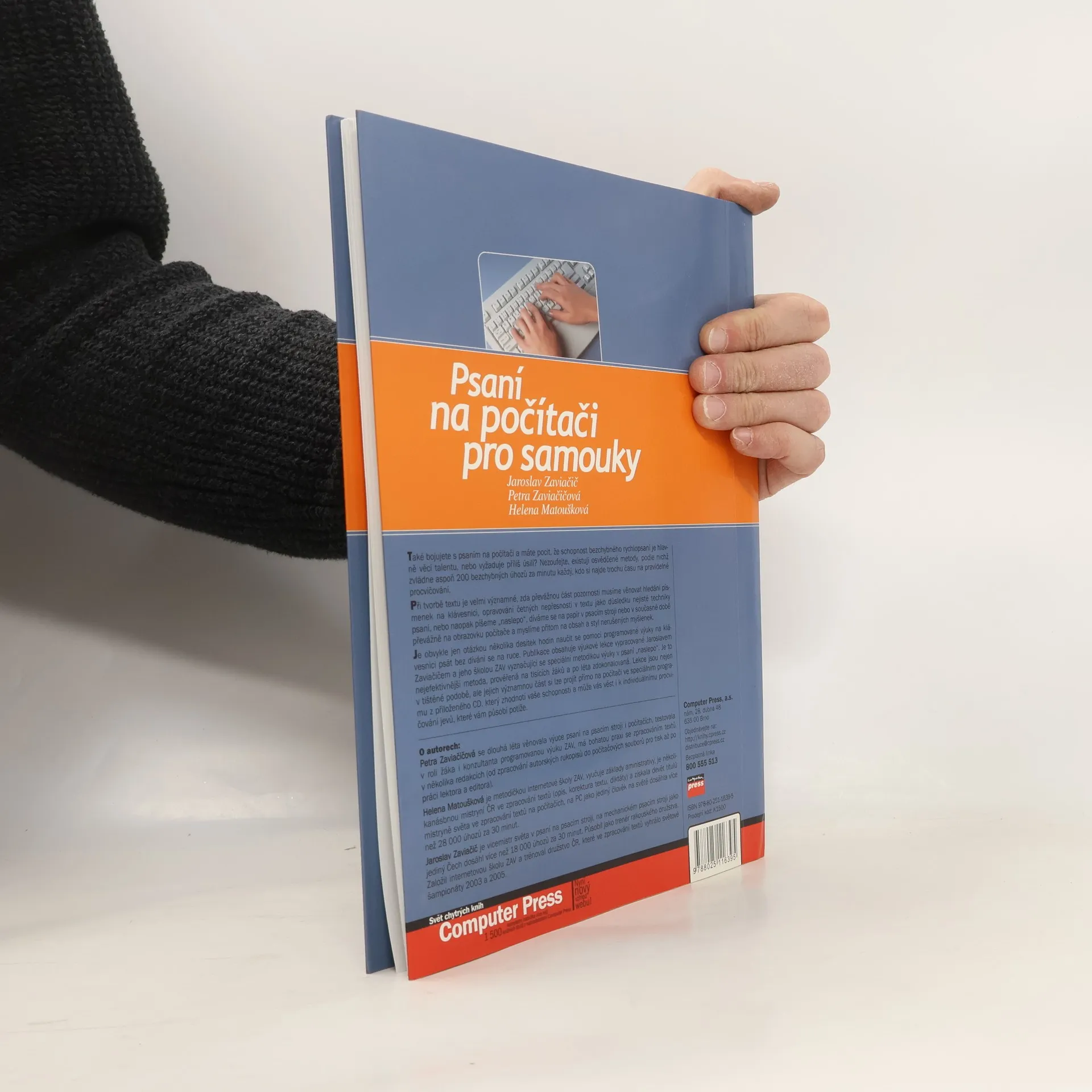 Naučte se rychle a správně "naslepo" psát na klávesnici pomocí moderní efektivní metody! Také bojujete s psaním na počítači a máte pocit, že schopnost bezchybného rychlopsaní je hlavně věcí talentu, nebo vyžaduje příliš úsilí? Nezoufejte, existují osvědčené metody, podle nichž zvládne aspoň 200 bezchybných úhozů za minutu každý, kdo si najde trochu času na pravidelné procvičování. Při tvorbě textu je velmi významné, zda převážnou část pozornosti musíme věnovat hledání písmenek na klávesnici, opravování četných nepřesností v textu jako důsledku nejisté techniky psaní, nebo naopak píšeme „naslepo“, díváme se na papír v psacím stroji nebo v současné době převážně na obrazovku počítače a myslíme přitom na obsah a styl nerušených myšlenek. Je obvykle jen otázkou několika desítek hodin naučit se pomocí programované výuky na klávesnici psát bez dívání se na ruce. Publikace obsahuje výukové lekce vypracované Jaroslavem Zaviačičem a jeho školou ZAV vyznačující se speciální metodikou výuky v psaní „naslepo“. Je to nejefektivnější metoda, prověřená na tisících žáků a po léta zdokonalovaná.