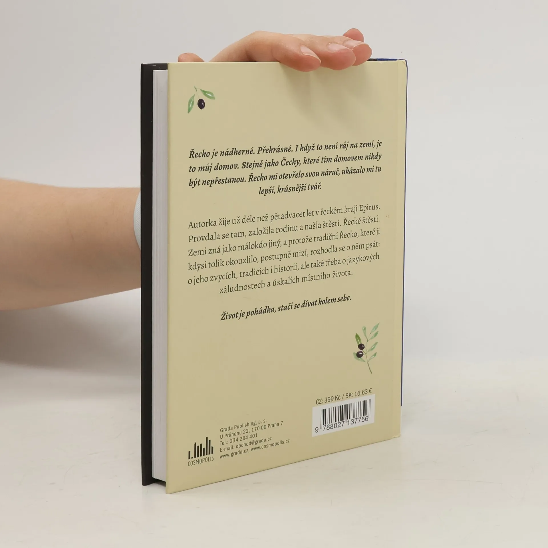 Autorka žije už déle než pětadvacet let v řeckém kraji Epirus, provdala se tam, založila rodinu a našlaštěstí. Řecké štěstí. Zemi zná jako málokdo jiný, a protože tradiční Řecko, které ji kdysi okouzlilo,postupně mizí, rozhodla se o něm psát – o jeho zvycích, tradicích, historii i legendách, ale také třebao jazykových záludnostech a úskalích života v cizí zemi.Mimo jiné se dozvíte:- Proč se Řekové zdají tak šťastní a bezstarostní- Jaká jsou tradiční řecká jídla- Jaké mají v Řecku vánoční cukroví a recepty na ně- Jaký mají Řekové vztah ke zvířatům- Proč mají Řekové Dušičky dvakrát za rok- Proč Řekové věří na úterý třináctého