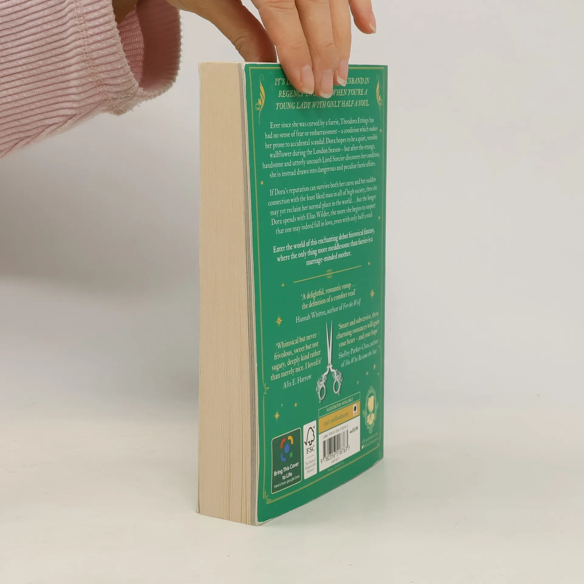 It's difficult to find a husband in Regency England when you're a young lady with only half a soul.Ever since she was cursed by a faerie, Theodora Ettings has had no sense of fear or embarrassment - a condition which makes her prone to accidental scandal. Dora hopes to be a quiet, sensible wallflower during the London Season - but when the strange, handsome and utterly uncouth Lord Sorcier discovers her condition, she is instead drawn into dangerous and peculiar faerie affairs.If Dora's reputation can survive both her curse and her sudden connection with the least-liked man in all of high society, then she may yet reclaim her normal place in the world. . . but the longer Dora spends with Elias Wilder, the more she begins to suspect that one may indeed fall in love, even with only half a soul.Bridgerton meets Howl's Moving Castle in this enchanting historical fantasy, where the only thing more meddlesome than faeries is a marriage-minded mother.Pick up HALF A SOUL, and be stolen away into Olivia Atwater's charming, magical version of Regency England!
