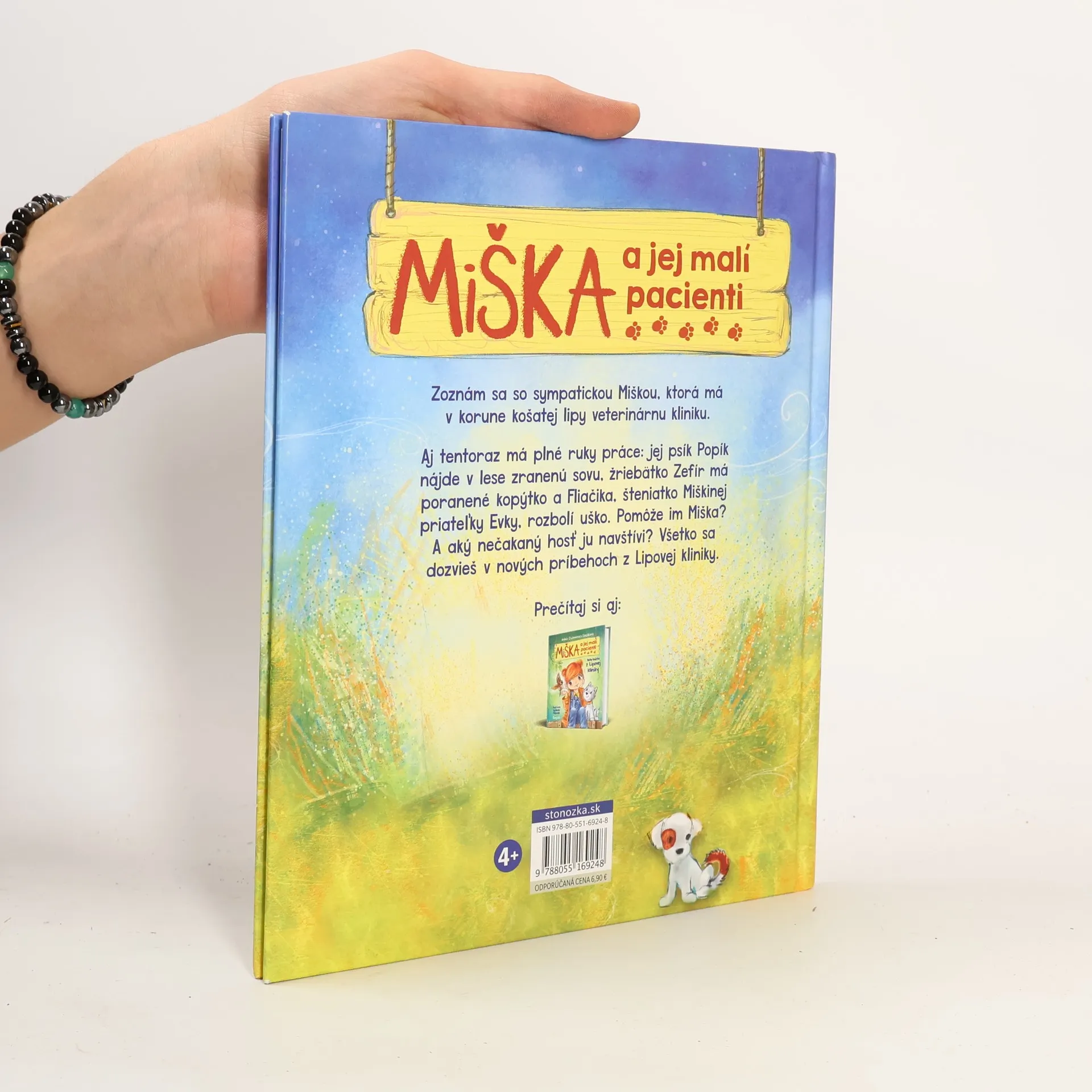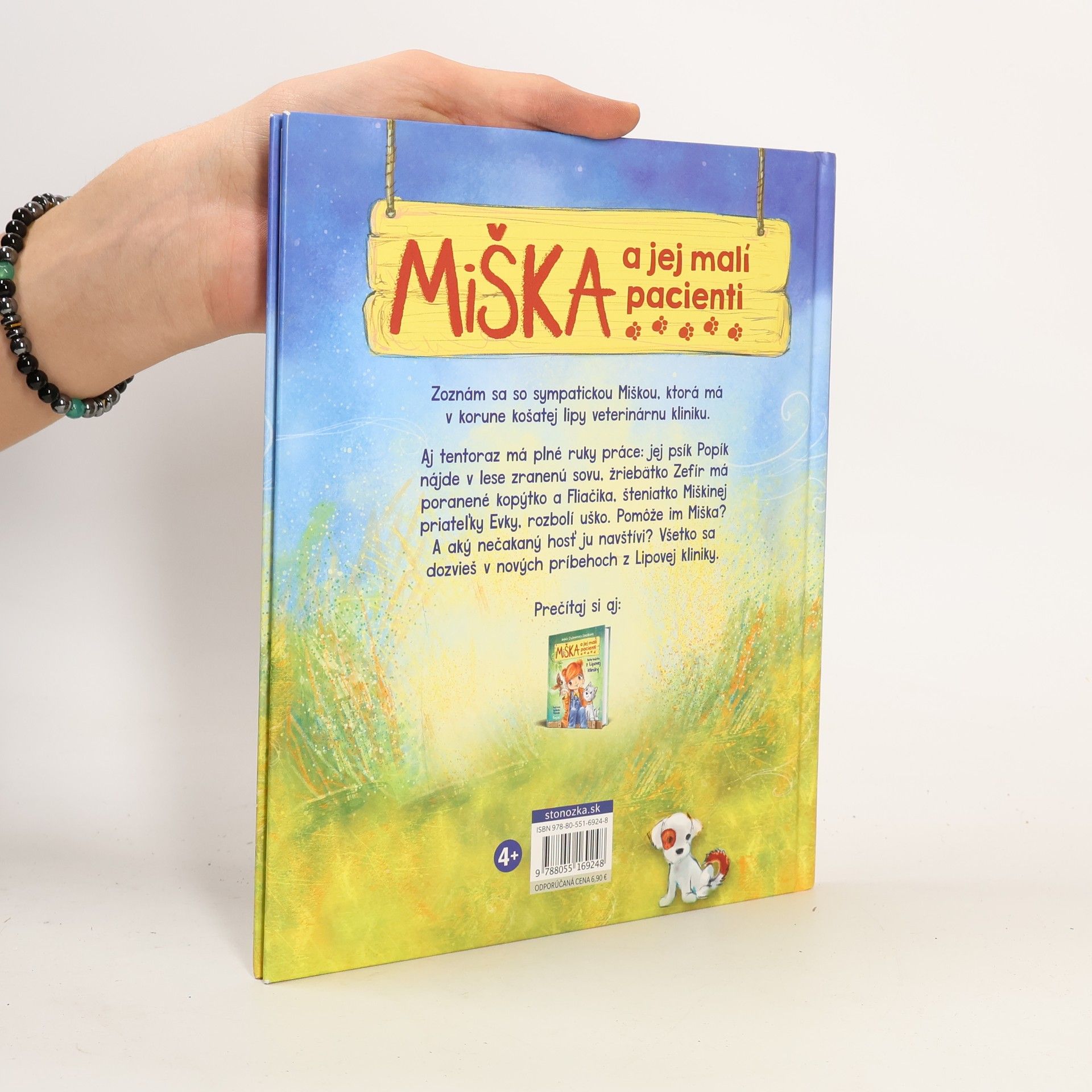 Zoznám sa so sympatickou sedemročnou Miškou, ktorá má v domčeku v korune košatej lipy veterinárnu kliniku. Má totiž neobyčajný dar – rozumie zvieratkám. Vďaka tomu presne vie, čo jej pacientov trápi. Pomáha jej aj najlepší priateľ – psík Popík. Aj tentoraz má veterinárka Miška plné ruky práce: Popík nájde v lese zranenú sovu, žriebätko Zefír má poranené kopýtko a Fliačika, šteniatko Miškinej priateľky Evky, rozbolí uško. Pomôže im Miška? A aký nečakaný hosť ju navštívi? Všetko sa dozvieš v nových príbehoch z Lipovej kliniky. Pre deti od 4 rokov Z poľského originálu Misia i jej mali pacjenci. Niespodziewani goście (Wydawnictwo Zielona Sowa, Warszawa 2017) preložila Silvia Kaščáková.