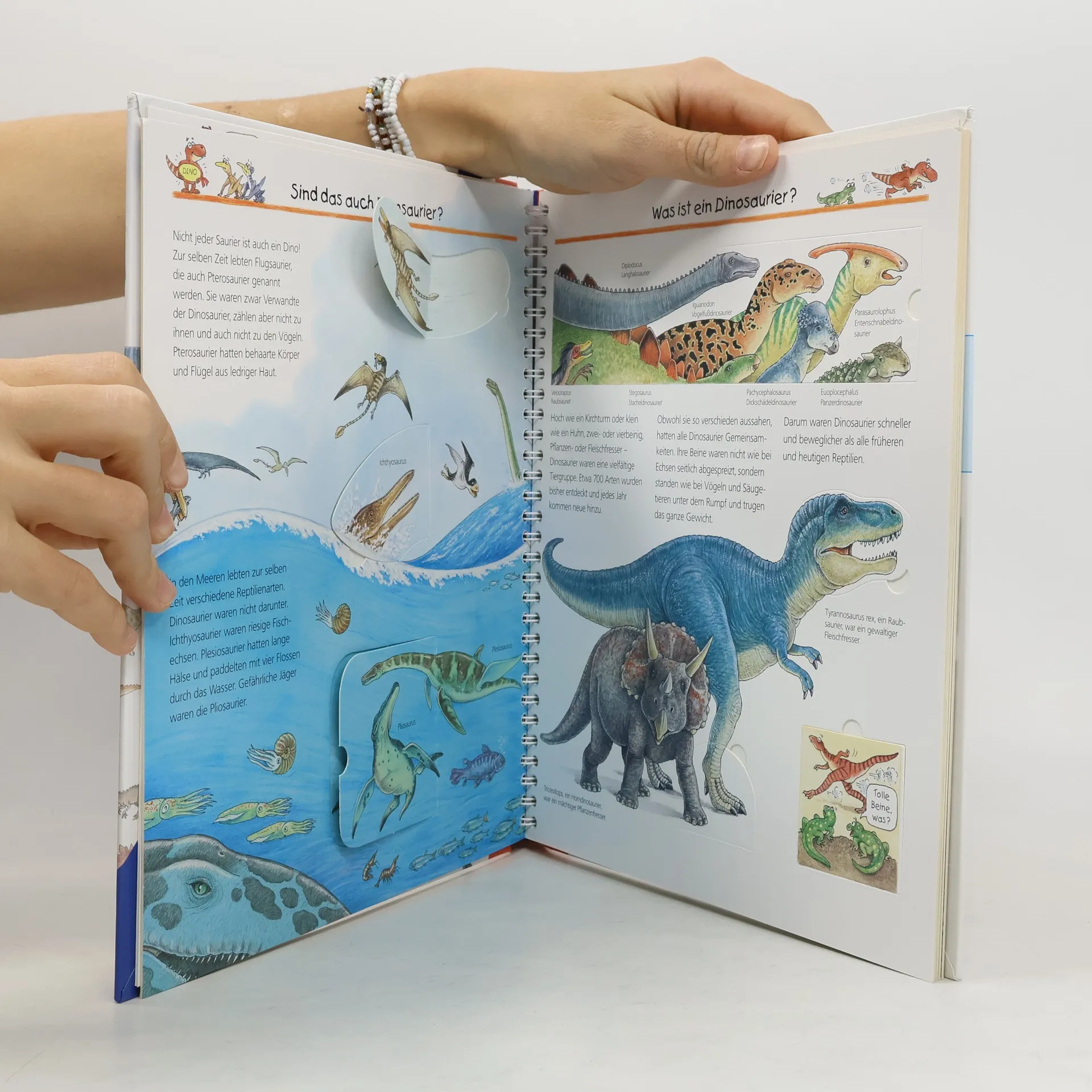 Stegosaurus, Triceratops, Tyrannosaurus rex und andere Dinosaurier sind die Stars in vielen Kinderzimmern und faszinieren durch ihr mysteriöses Aussterben. Dieses Buch beantwortet die drängendsten Fragen der Kinder zu diesen Urzeitgiganten und deren Erforschung, wie etwa: Welcher Dinosaurier war der gefährlichste? Wie jagten die Dinos? Und wie gelangt ein Saurier ins Museum? Die Sachbuchreihe richtet sich an Kinder von 4–7 Jahren und fördert die Neugier. Täglich entdecken Kinder Neues, was viele Fragen aufwirft: Warum sind die Dinosaurier ausgestorben? Wo ist die Sonne in der Nacht? Wozu brauchen wir Blut? Diese Reihe bietet kindgerechte Antworten und beleuchtet verschiedene Themen aus der Alltags- und Interessenswelt der Kinder mit viel Liebe zum Detail. Detailreiche Bilder, verständliche Texte und überraschende Klappen, die Bewegungen oder Abläufe veranschaulichen, helfen den Kindern, sich die Themen selbst zu erschließen. Der Spaß am eigenständigen Entdecken, die liebevolle Gestaltung und die hochwertige Ausstattung garantieren langanhaltende Freude an jedem Buch.