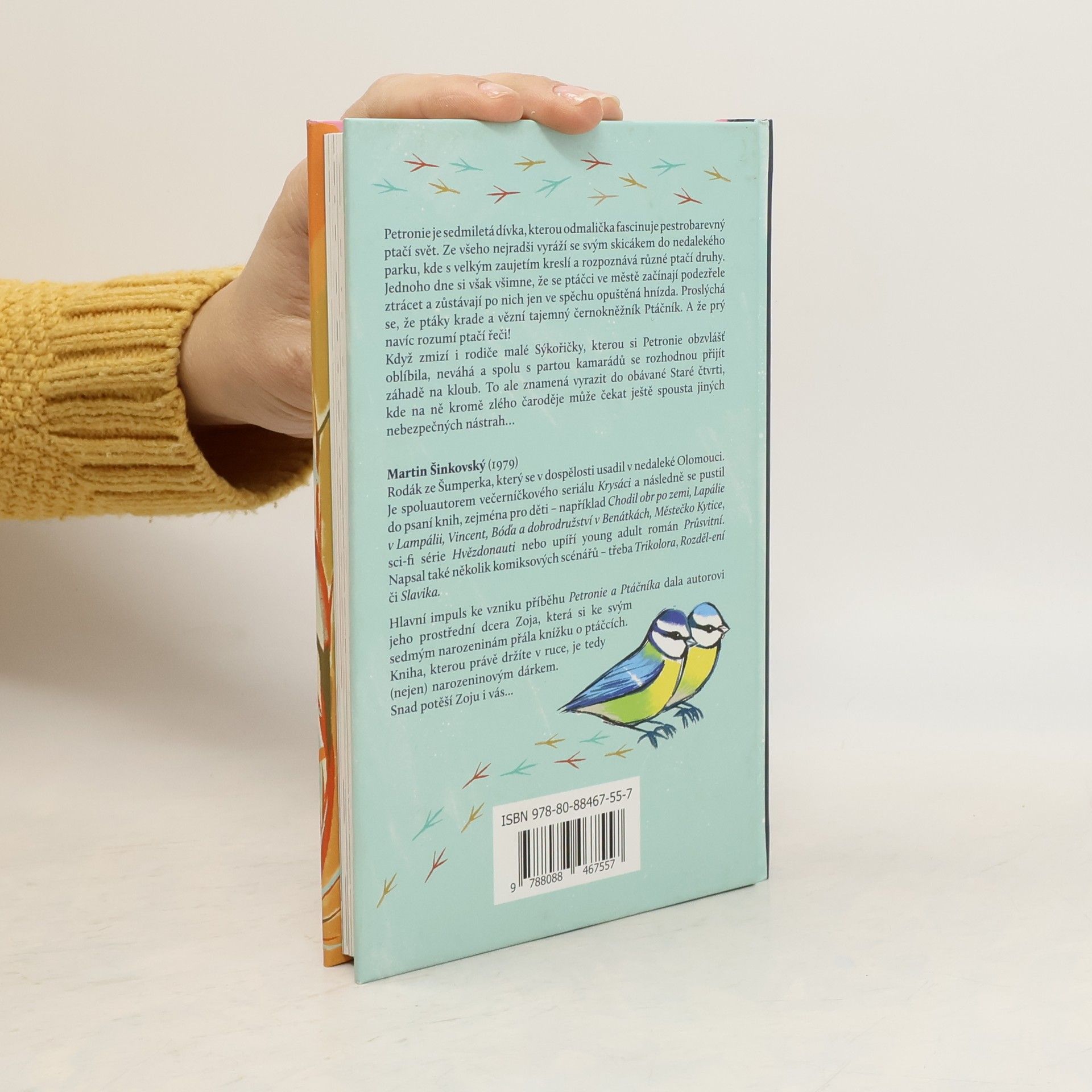 Petronie je sedmiletá dívka, kterou odmalička fascinuje pestrobarevný ptačí svět. Ze všeho nejradši vyráží se svým skicákem do nedalekého parku, kde s velkým zaujetím kreslí a rozpoznává různé ptačí druhy. Jednoho dne si však všimne, že se ptáci ve městě začínají podezřele ztrácet a zůstávají po nich jen ve spěchu opuštěná hnízda. Proslýchá se, že ptáky krade a vězní tajemný černokněžník Ptáčník. A že prý navíc rozumí ptačí řeči! Když zmizí i rodiče malé Sýkoričky, kterou si Petronie obzvlášť oblíbila, neváhá a spolu s partou kamarádů se rozhodnou přijít záhadě na kloub. To ale znamená vyrazit do obávané Staré čtvrti, kde na ně kromě zlého čaroděje může čekat ještě spousta jiných nebezpečných nástrah…