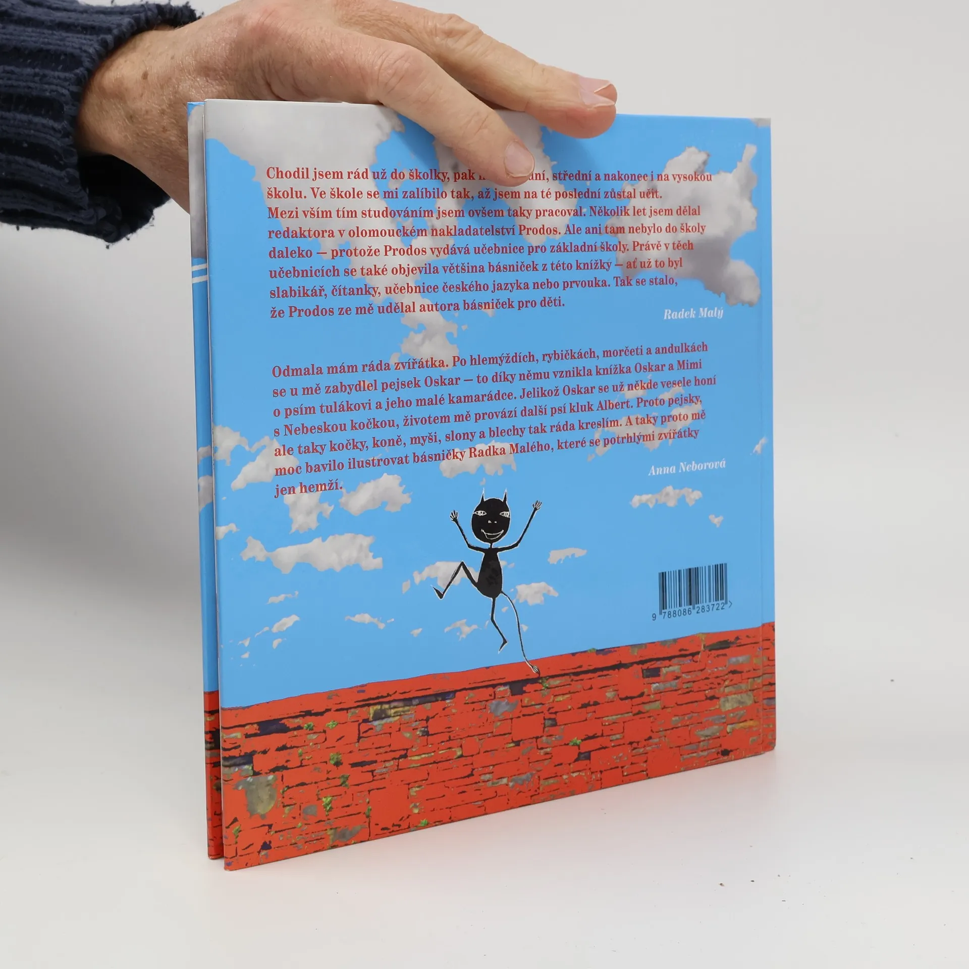 To nejlepší z dětské poezie talentovaného básníka Radka Malého: verše ze svého dnes již proslulého slabikáře (jedinečně ilustrovaného Matějem Formanem) a dalších čítanek a učebniček pro děti vybral sám autor a k tomu přidal řadu krásné nové lyriky. S dívčí něhou a přitom s humorem poezii ilustrovala malířka Anna Neborová a klučičí prvek v podobě písma ze stavebnice Merkur přičinil typograf Marek Pistora podepsaný také pod nápaditým designem této po všech stránkách povedené knihy. Nakonec ještě citát z doslovu básnířky Violy Fischerové: I knížky pro děti jsou zbožím, kde, pokud jde o autory, je jako všude mnoho povolaných — a málo vyvolených. Knížka Radka Malého a Anny Neborové patří k těm vzácnějším. Jeho básně jsou chytré, plné směšných nápadů jak jazykových, tak situačních, a navíc ještě je to poezie. A jedlá. Já jako dítě bych tedy tenhle jejich slabikář brala.