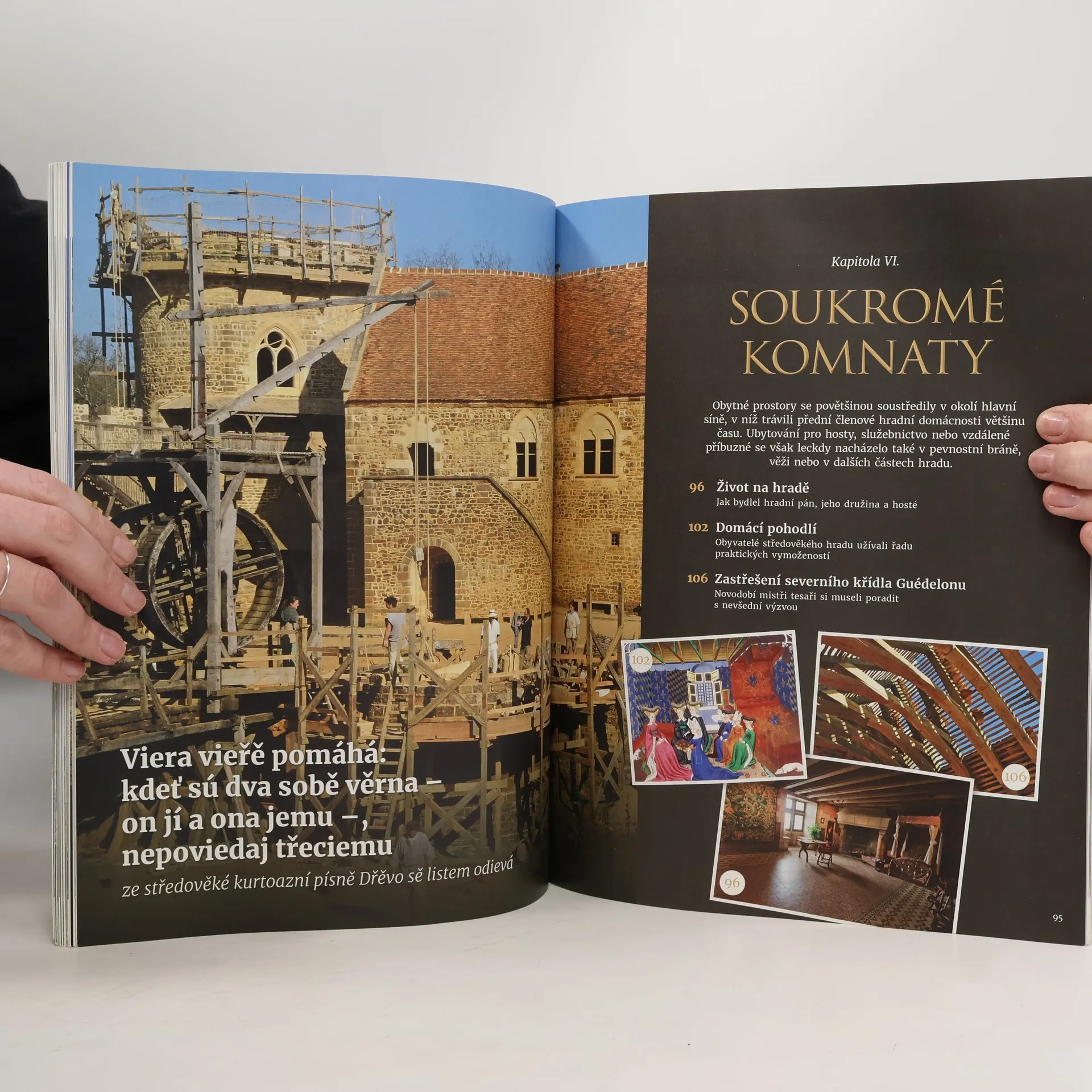 Jak se hrad stavěl, jak se dobýval a bránil, jak se na něm žilo. Středověké hrady byly budovány pro obranu a byly symbolem moci a autority. Jak se stavěly, jak se bránily dobyvatelům a jak se na nich žilo? Z prostých dřevěných fortifikací se postupně vyvinuly v komplexní kamenné struktury velikosti malé vesnice! Byly domovem hradního pána a doslova armády personálu a dalších obyvatel. Do jejich stavby se zapojilo obrovské množství pracovních sil, které používaly ve své době nové znalosti a technologické postupy. Tato podrobná publikace ukazuje každý detail typického středověkého hradu od prevétu a kuchyně po velký sál a soukromé komnaty. Ilustrovaná schémata a vyfotografované postupy krok za krokem objasňují konstrukci hradu od tesání kamene, přes vypalování cihel až po budování dřevěné střechy. Dávají nahlédnout pod pokličku práce středověkých řemeslníků, stavitelů a tesařů.