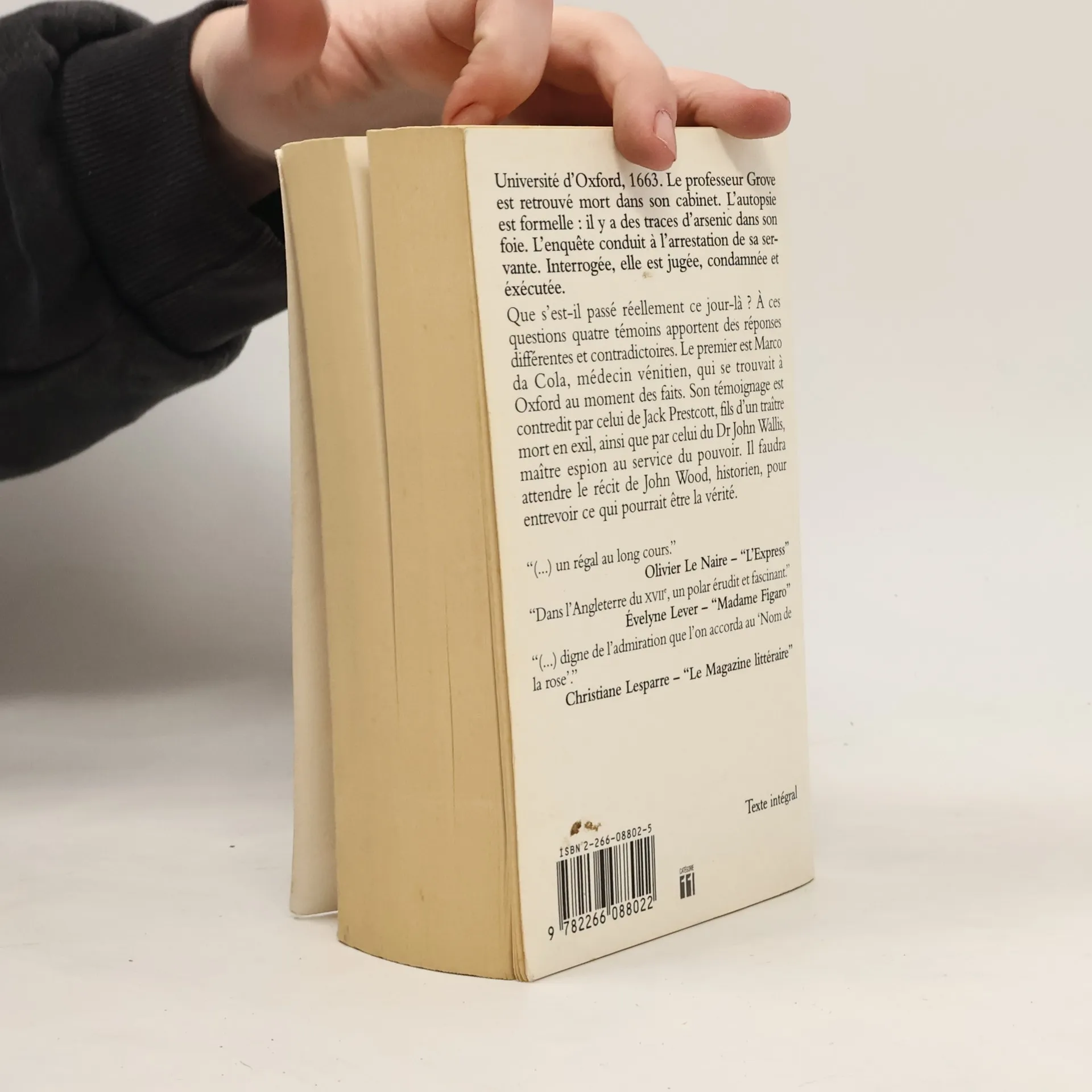 "[...] Le genre de livre qu'on lit sous le drap à la lumière d'une lampe électrique. C'est un roman historique destiné à rivaliser avec Le Nom de la rose". (The Times) "Les plaisirs simples d'un récit d'Agatha Christie associées à la subtilité intellectuelle d'Umberto Eco. Le genre a franchi là une nouvelle étape. Lisez ce roman toutes affaires cessantes". (Sunday Times) "Le roman de Pears entremêle les grands récits historiques et les tragédies individuelles dans un thriller imprévisible d'une audacieuse générosité". (Independant on Sunday) "Brillante réussite [...] Totalement passionnant de bout en bout [...] Peut-être le véritable exploit de Pears est-il d'avoir su recréer l'univers du XVIIè siècle". (Evening Standart) "Un thriller philosophique porté par une imagination, une audace et une originalité époustouflantes. A ne pas manquer". ( Washington Post)