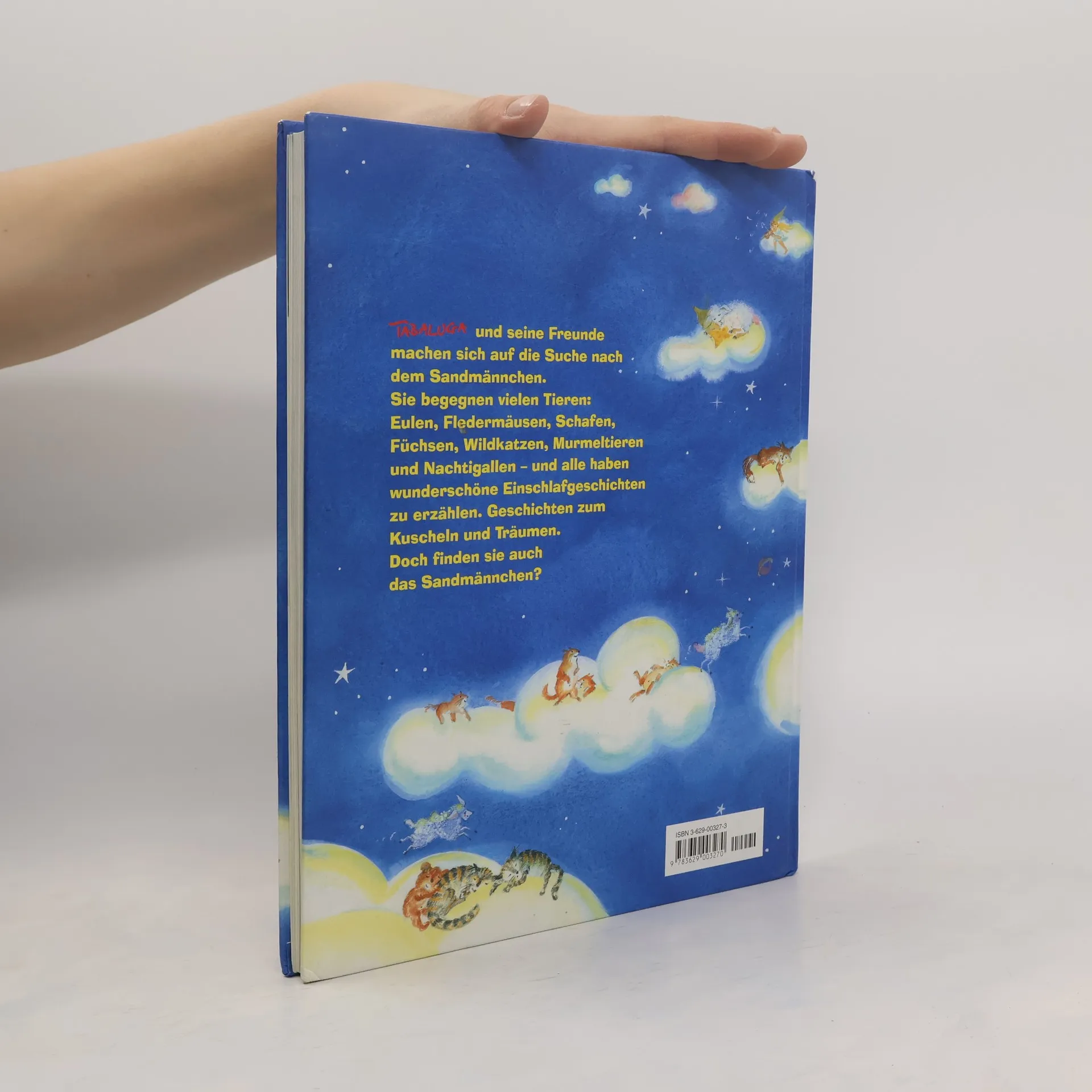 Tabaluga und seine Freunde sind auf der Suche nach dem Sandmännchen. Auf dem Weg treffen sie viele Tiere: Eulen und Fledermäuse, Schafe und Füchse, Wildkatzen und Murmeltiere und zum Schluss noch Nachtigallen. Alle erzählen ihre schönsten Gute-Nacht-Geschichten, aber ob sie am Ende auch das Sandmännchen finden. ?